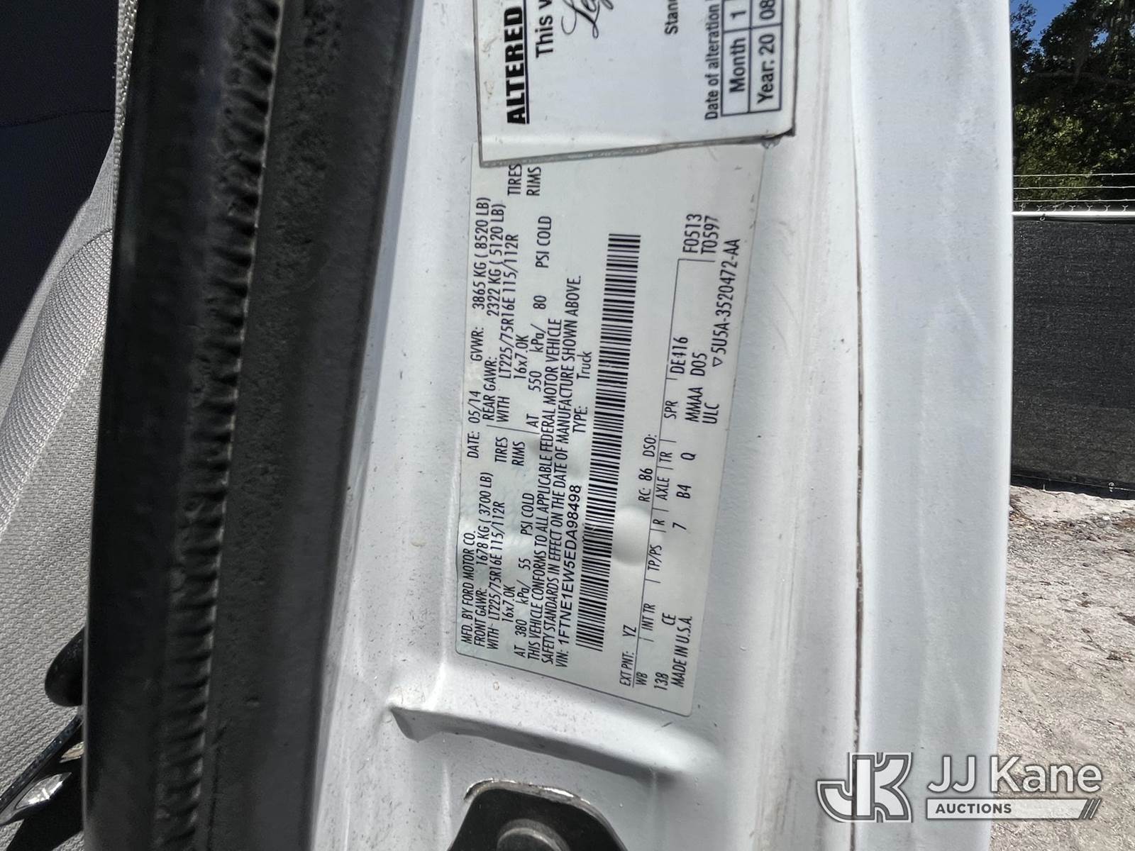 2014 Ford E150 Cargo Van, 8-cyl gas, RWD, Auto, A/C, (125,675 miles) (Runs & Moves) (FL Residents Purchasing Titled Items – tax, title & registration fees will be collected at the maximum rate of $400.00 under 25,999 and $800.00 for Over 26,000 and $250.00 trailers – Proof of insurance is mandatory; Out of State Residents Purchasing Title Items – tax will be collected based upon your state rate.) This is a Titled Item NOTE: This unit is being sold AS IS/WHERE IS via Timed Auction and is located in Thonotosassa, FL. Inspection & preview days for this unit are the 2 business days prior to the first day of items closing for this auction, item is located at 11720 N US 301 Thonotosassa, Fl 33592 and hours of operations are 8a-4p. For pre-sale questions, please contact Office Staff @ (813) 986-2485. (Buyer is responsible for removal. Assistance by consignor or JJ Kane Auctions is not assured.)