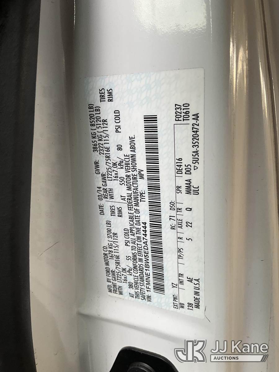 2014 Ford Econoline E-150 XL Passenger Van, 8-cyl gas, 4-Speed Automatic, A/C, (146,219 miles) (Runs & Moves) This is a Titled Item NOTE: This unit is being sold AS IS/WHERE IS via Timed Auction and is located in Jurupa Valley, CA. Inspection & preview days for this unit are the 2 business days prior to the first day of items closing for this auction, item is located at 4510 Muth Way Jurupa Valley, CA 92509 and hours of operations are 8a-4p. For pre-sale questions, please contact please contact Office Staff @ (310) 353-7140. Dealer License Number 45696. (Buyer is responsible for removal. Assistance by consignor or JJ Kane Auctions is not assured.)