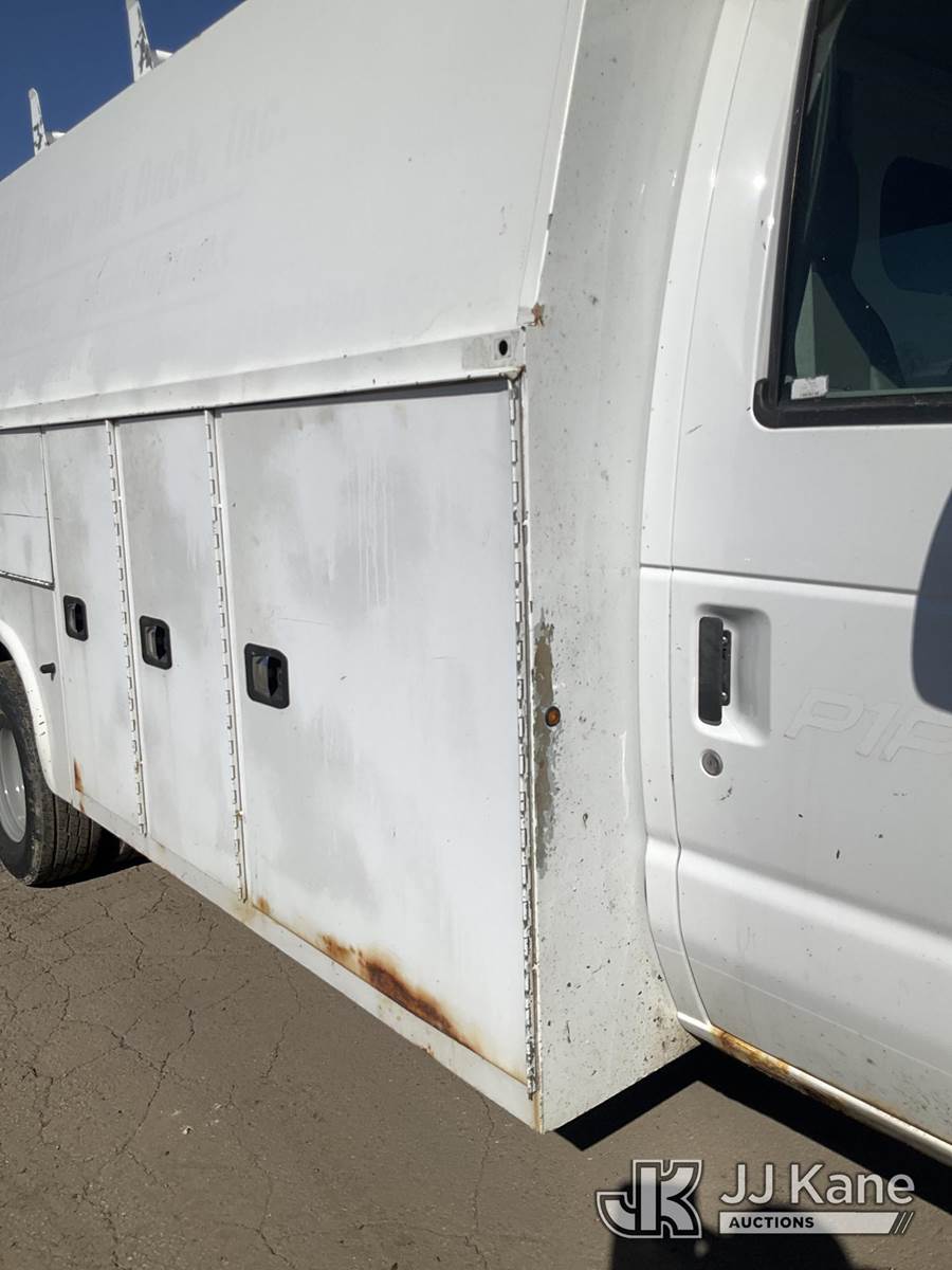 2014 Ford Econoline E450 Cutaway Service Van, 10-cyl gas, RWD, Auto, A/C, (208,481 miles) (Runs & Moves) (Airbag Light On, Paint, Body, Rust Damage) This is a Titled Item NOTE: This unit is being sold AS IS/WHERE IS via Timed Auction and is located in South Beloit, IL. Inspection & preview days for this unit are the 2 business days prior to the first day of items closing for this auction, item is located at 14354 Dearborn Ave South Beloit, IL and hours of operations are 8a-4p. For pre-sale questions, please contact Derek Eklund at (608) 904-0618 or (derek.eklund@jjkane.com). (Buyer is responsible for removal. Assistance by consignor or JJ Kane Auctions is not assured.)