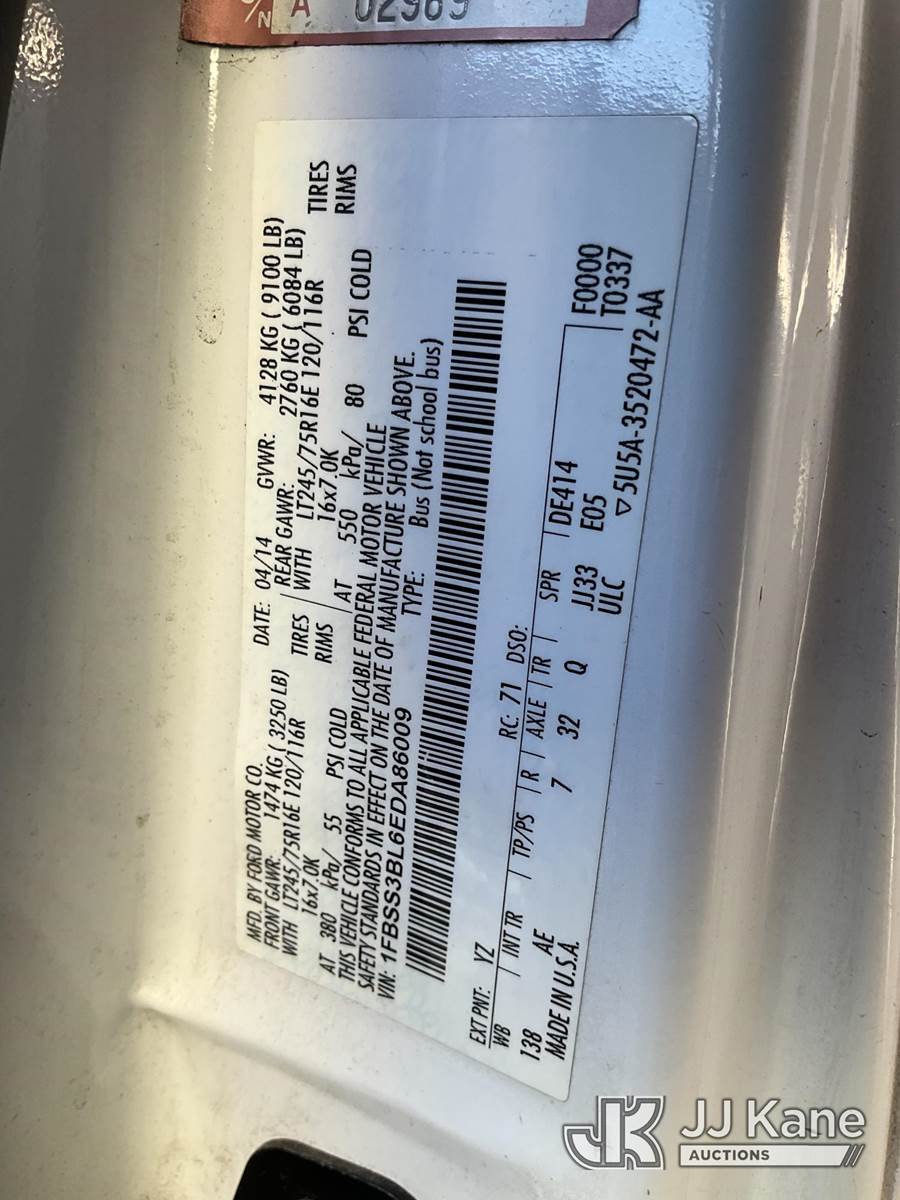 2014 Ford Econoline Passenger Van, 5.4L V8 SOHC 16V RWD, GAS, Auto, A/C, (59,027 miles) (Runs & Moves, Passenger Door Damaged Will Not Shut) (Bidding Restricted to Licensed Vehicle Dealers Only), This is a Titled Item NOTE: This unit is being sold AS IS/WHERE IS via Timed Auction and is located in Jurupa Valley, CA. Inspection & preview days for this unit are the 2 business days prior to the first day of items closing for this auction, item is located at 4510 Muth Way Jurupa Valley, CA 92509 and hours of operations are 8a-4p. For pre-sale questions, please contact please contact Office Staff @ (310) 353-7140. Dealer License Number 45696. (Buyer is responsible for removal. Assistance by consignor or JJ Kane Auctions is not assured.)