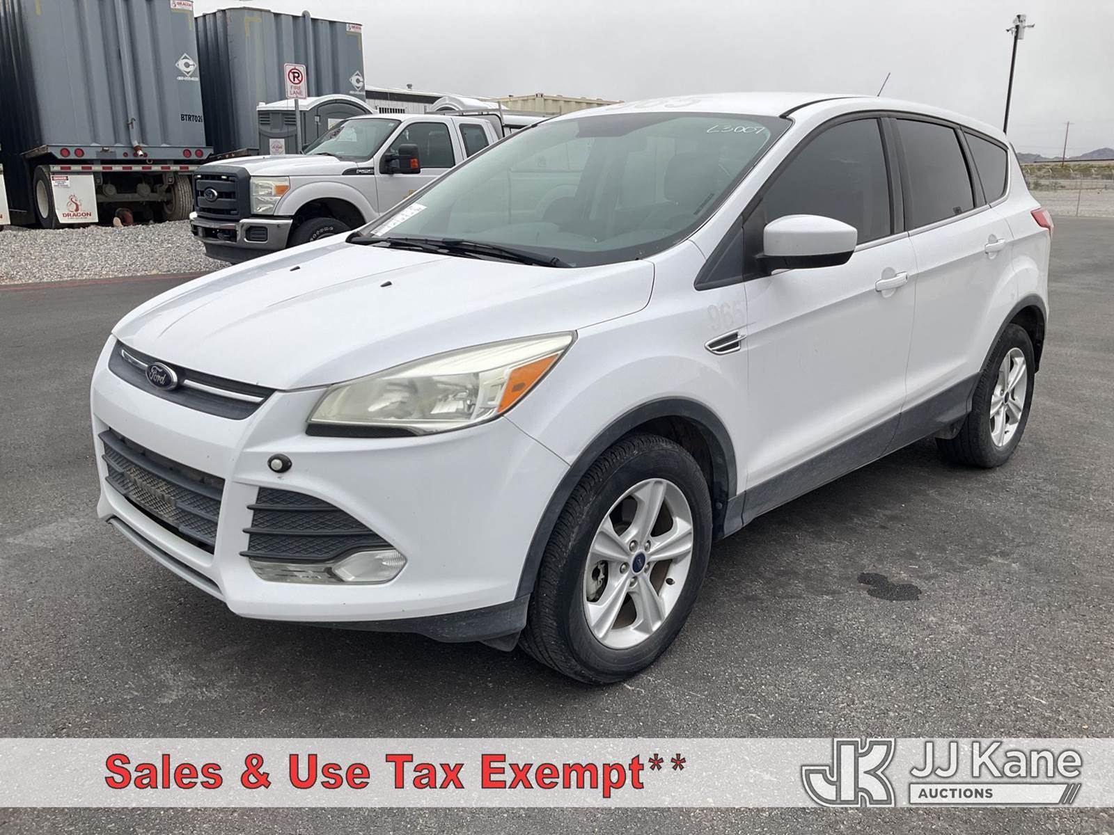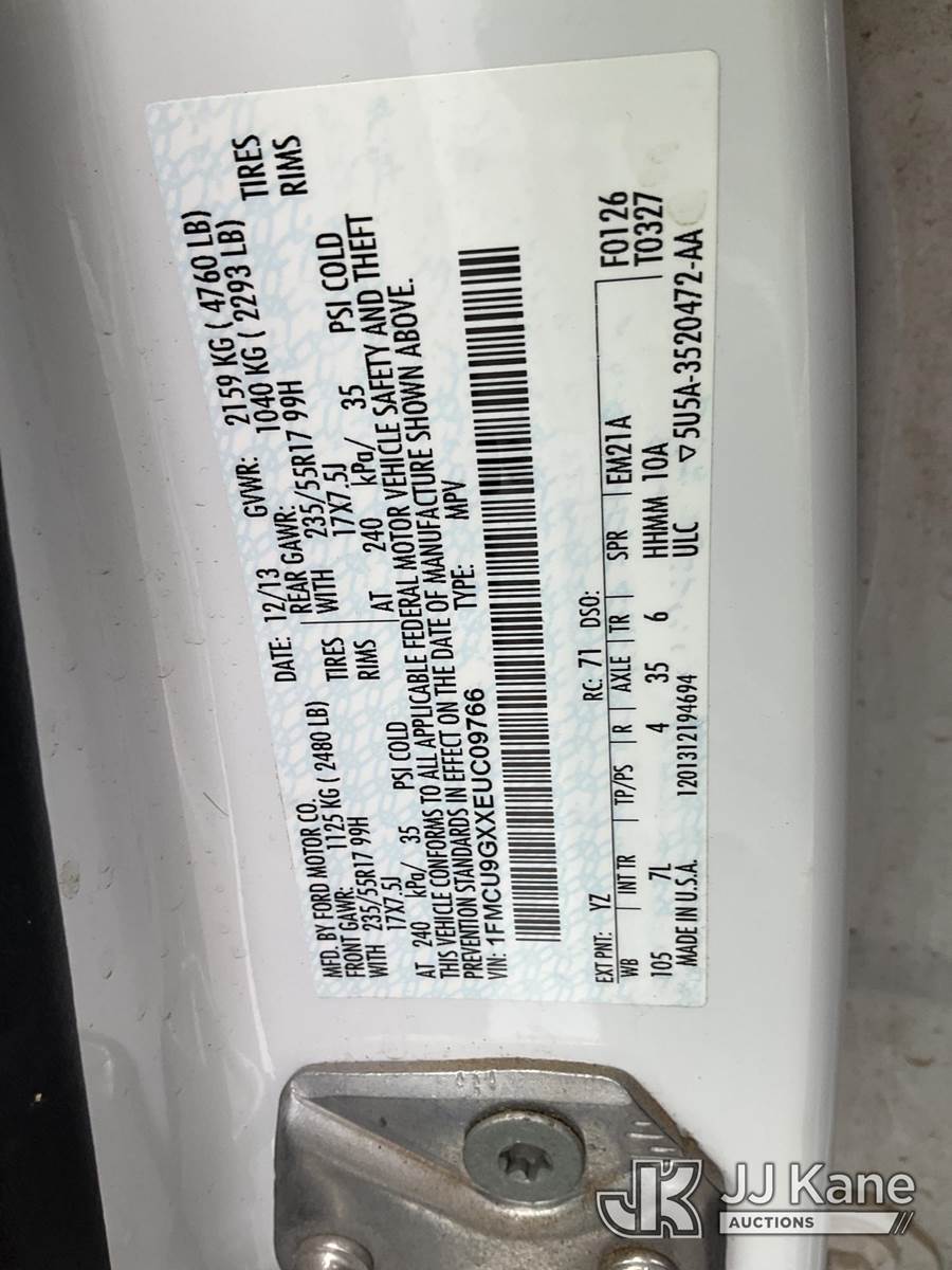 2014 Ford Escape 4x4 4-Door Sport Utility Vehicle, 1.6L L4 DOHC 16V gas, 6-Speed Automatic, A/C, (127,717 miles) (Runs & Moves) This is a Titled Item NOTE: This unit is being sold AS IS/WHERE IS via Timed Auction and is located in Las Vegas, NV. Inspection & preview days for this unit are the 2 business days prior to the first day of items closing for this auction, item is located at 14655 Grand Valley Pkwy Las Vegas, NV 89165 and hours of operations are 8a-4p. Titles executed exactly as bidder registered. Ensure your name and/or business name and address in JJ Kane and/or ProxiBid is correct before bidding. For pre-sale questions, please contact Office Staff @ (801) 519-0123 and provide sale date and lot number. Las Vegas Dealer License Number DLR000053086 / OHV000053094. (Buyer is responsible for removal. Assistance by consignor or JJ Kane Auctions is not assured.)