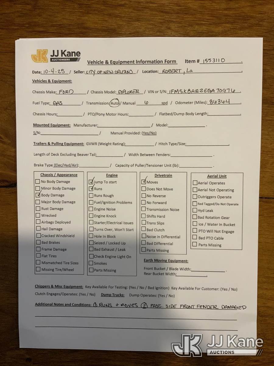 2014 Ford Explorer AWD Police Interceptor 4-Door Sport Utility Vehicle, 6-cyl gas, Auto, A/C, (86,364 miles) (Runs & Moves) (Jump To Start, ABS Light On, Traction Control Light On, Body Damage) This is a Titled Item NOTE: This unit is being sold AS IS/WHERE IS via Timed Auction and is located in Robert, LA. For more information & removal arrangements please contact Jordan Bane @ jordan.bane@altec.com. License # LA AB-154 (Buyer is responsible for removal. Assistance by consignor or JJ Kane Auctioneers is not assured.)