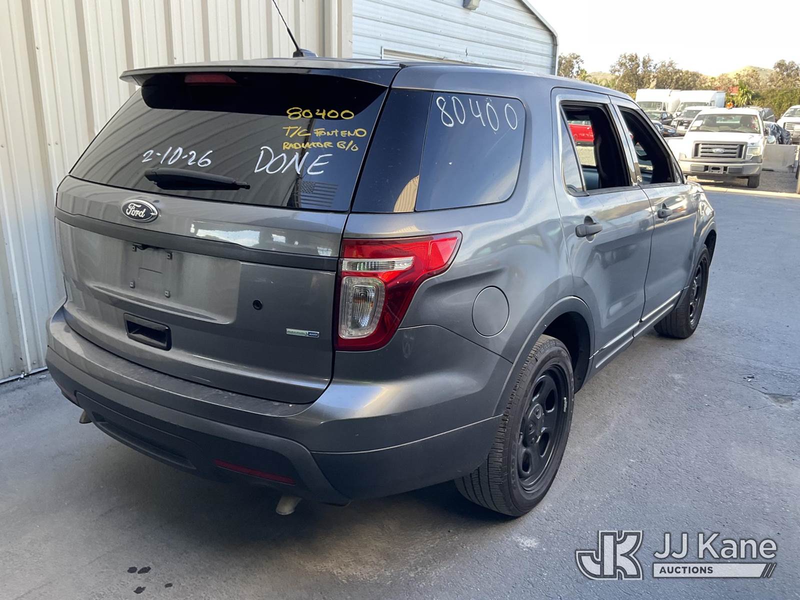 2014 Ford Explorer Police 4WD 4-Door Sport Utility Vehicle, s/n 1FM5K8AR0EGB38093, 3.7L V6 DOHC 24V Gas, 6-Speed Automatic, A/C, (207,843 miles) (Runs & Moves) (Interior & Body Stripped Of Parts, Body Damage, Overheating, Per Seller No Coolant Radiator Leak) (Bidding Restricted to Licensed Vehicle Dealers Only), This is a Titled Item NOTE: This unit is being sold AS IS/WHERE IS via Timed Auction and is located in Jurupa Valley, CA. Inspection & preview days for this unit are the 2 business days prior to the first day of items closing for this auction, item is located at 4510 Muth Way Jurupa Valley, CA 92509 and hours of operations are 8a-4p. For pre-sale questions, please contact please contact Office Staff @ (310) 353-7140. Dealer License Number 45696. (Buyer is responsible for removal. Assistance by consignor or JJ Kane Auctions is not assured.)