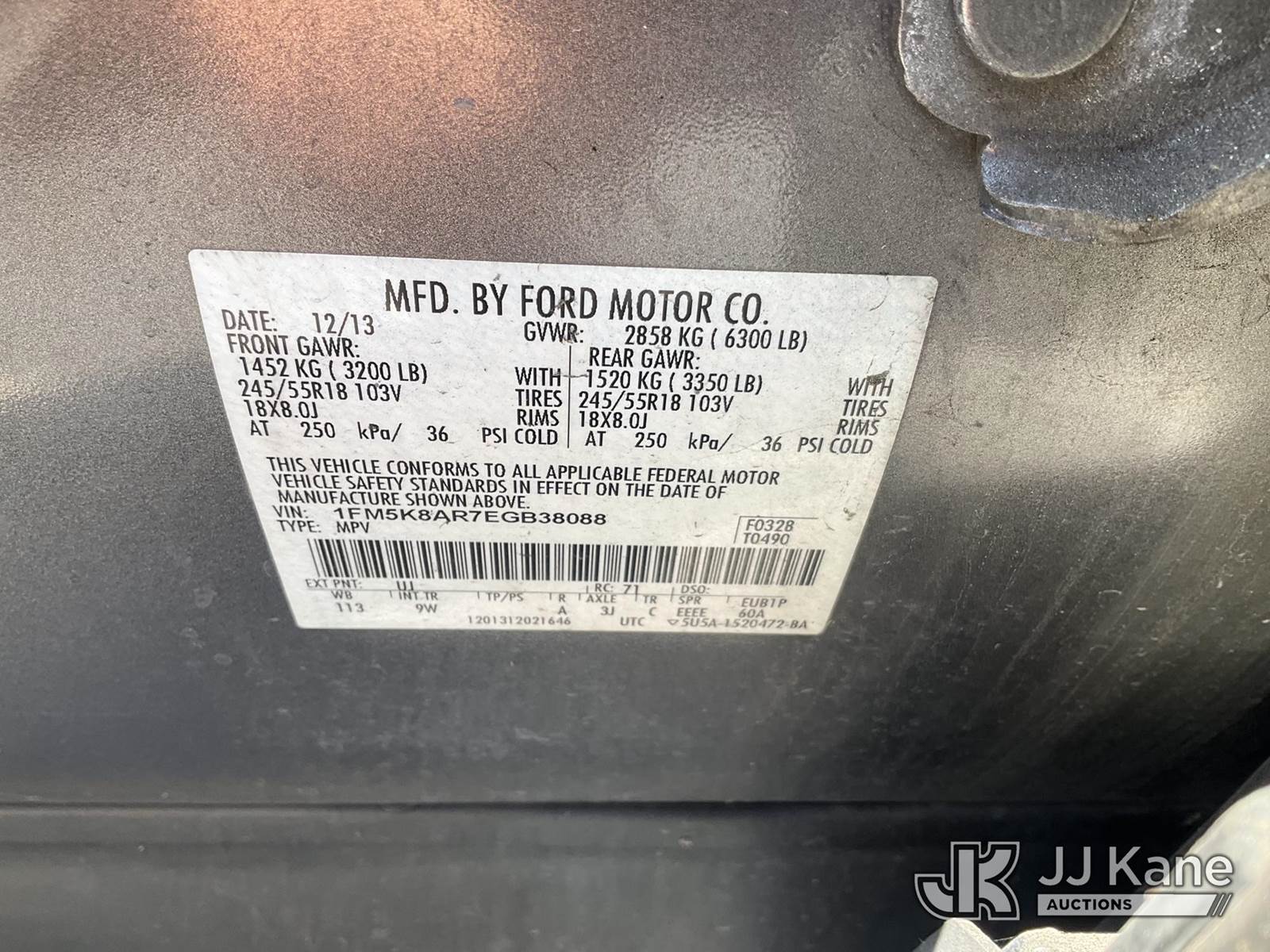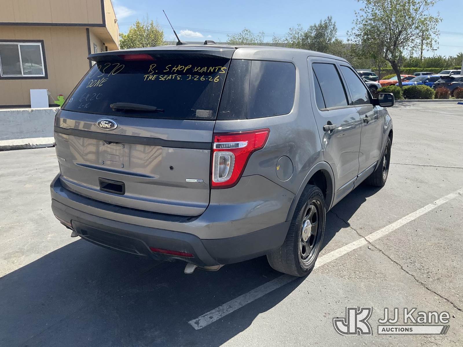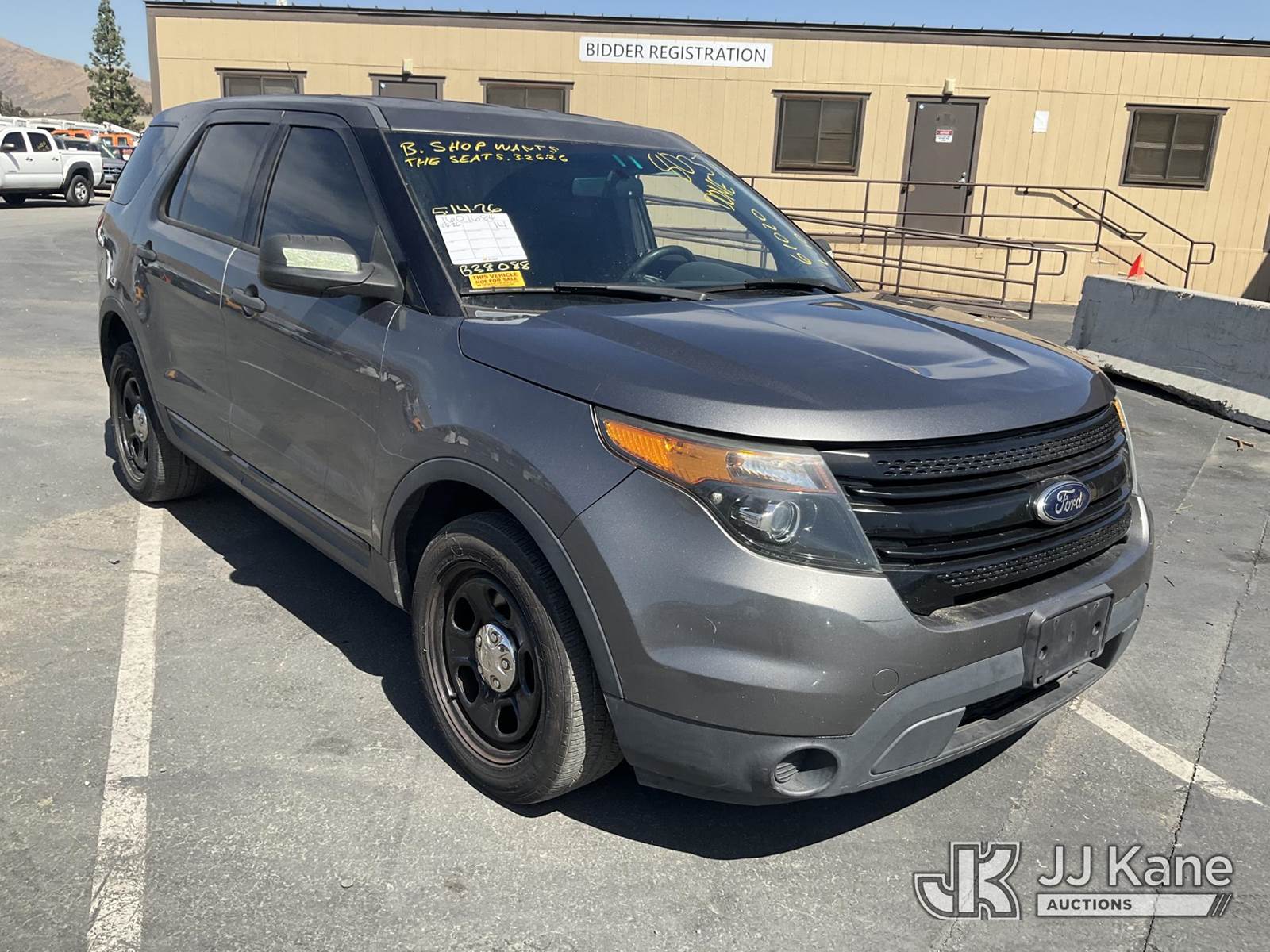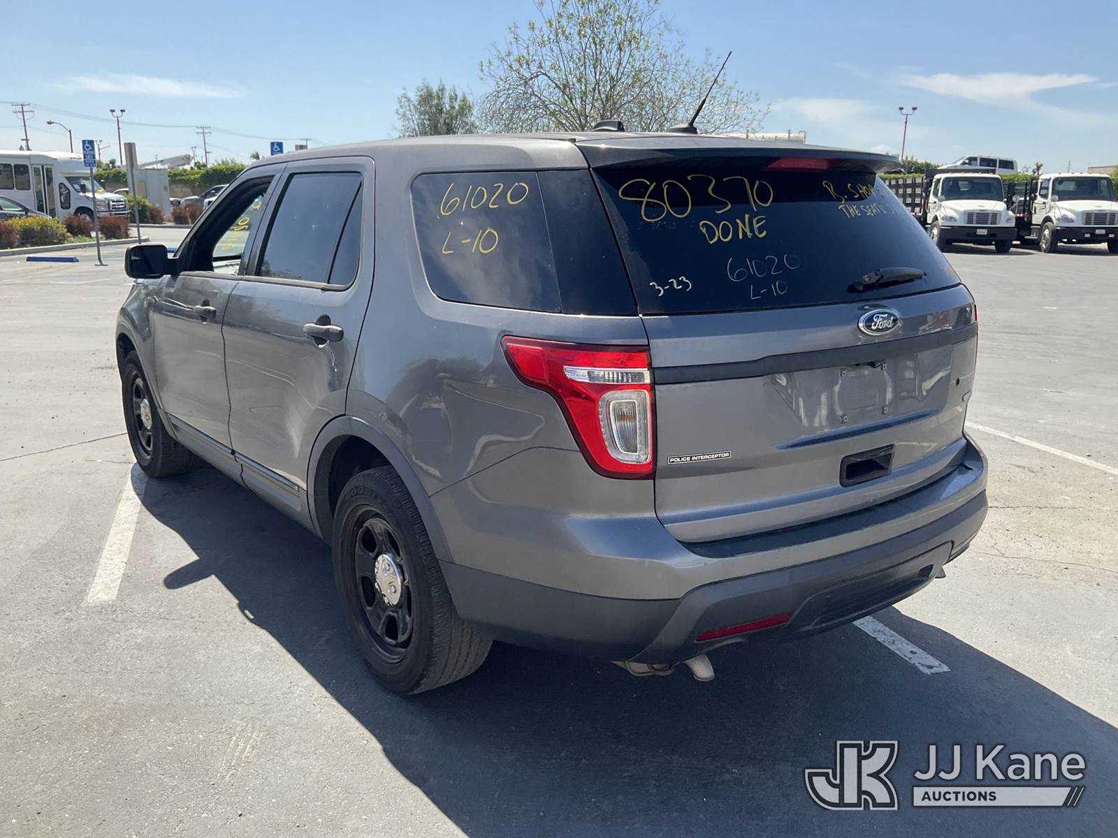 2014 Ford Explorer Police 4WD 4-Door Sport Utility Vehicle, s/n 1FM5K8AR7EGB38088, 3.7L V6 DOHC 24V GAS, 6-Speed Automatic, A/C, (179,461 miles) Vehicle is subject to an open NHTSA safety recall related to AN EXTERIOR A-PILLAR TRIM PART THAT DETACHES WHILE DRIVING CAN CREATE A ROAD HAZARD FOR OTHER ROAD USERS, INCREASING THE RISK OF A CRASH, but a remedy for this recall does not appear to be available. Dealer is not authorized to perform the recall repair. Periodically contact the manufacturer or check the VIN on the NHTSA website at www.safercar.gov to determine whether a remedy for the recall is available. As soon as a remedy is available, arrange to have the recall remedied with a dealer from that make of car to make such repair. (Runs & Moves, Low On Fuel, Interior Stripped Of Parts, Open Recall, Remedy Not Yet Available ) (Bidding Restricted to Licensed Vehicle Dealers Only), This is a Titled Item NOTE: This unit is being sold AS IS/WHERE IS via Timed Auction and is located in Jurupa Valley, CA. Inspection & preview days for this unit are the 2 business days prior to the first day of items closing for this auction, item is located at 4510 Muth Way Jurupa Valley, CA 92509 and hours of operations are 8a-4p. For pre-sale questions, please contact please contact Office Staff @ (310) 353-7140. Dealer License Number 45696. (Buyer is responsible for removal. Assistance by consignor or JJ Kane Auctions is not assured.)