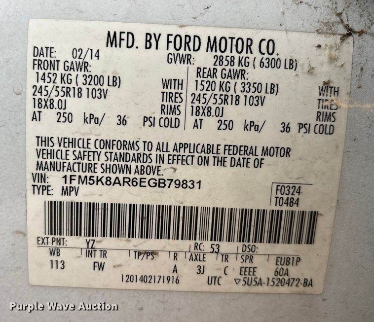 VIN: 1FM5K8AR6EGB79831