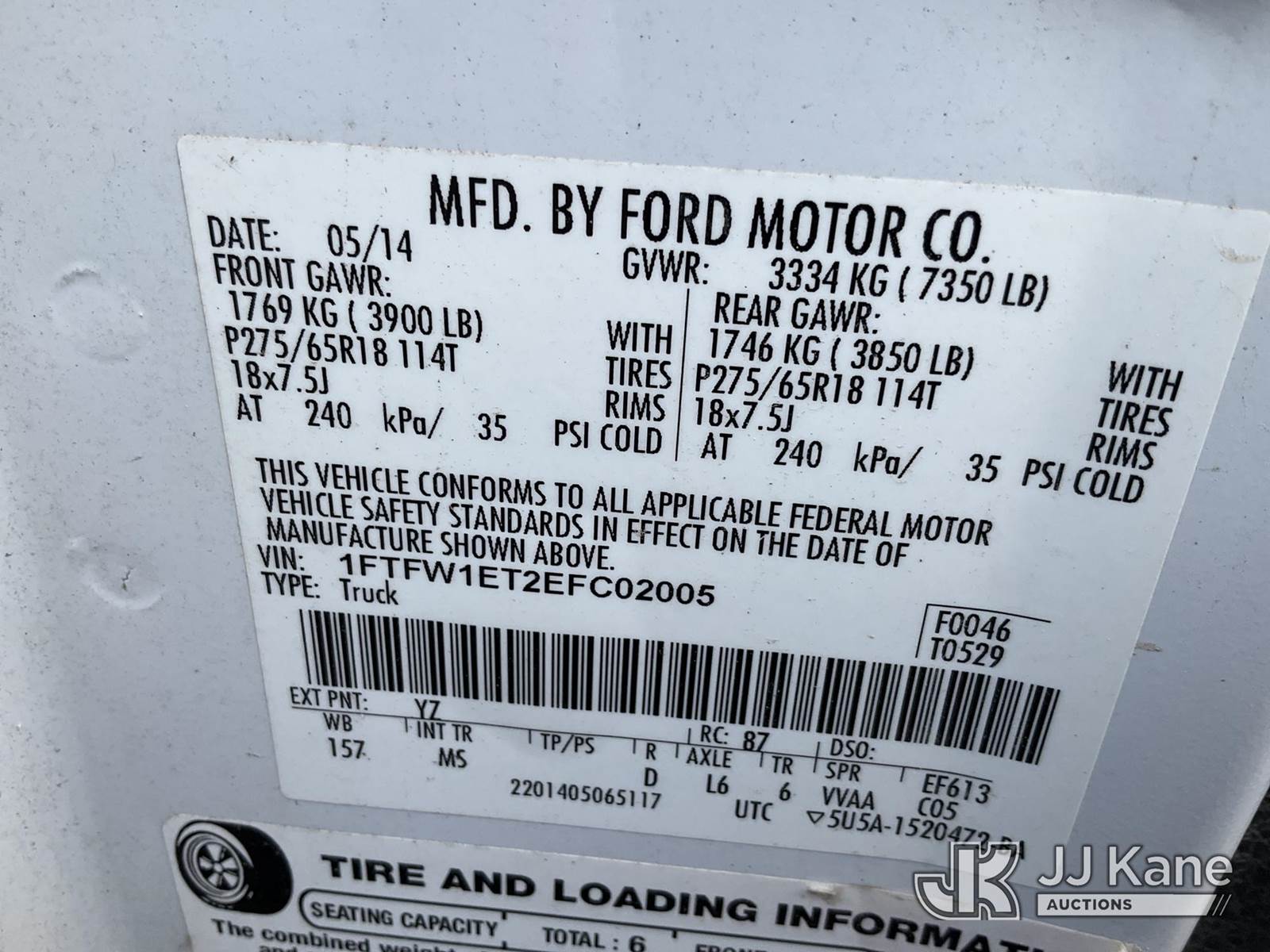 2014 Ford F-150 Crew-Cab Pickup Truck, 6-cyl gas, 6-Speed Automatic, 4wd, A/C, (240,498 miles) (Does Not Crank or Start, Conditions Unknown) (Jump for Odometer, Engine Light On) This is a Titled Item NOTE: This unit is being sold AS IS/WHERE IS via Timed Auction and is located in Conway, AR. Inspection & preview days for this unit are by appointment only; please contact us at contact@jjkane.com or 84-Go-JJKane for more details. (Buyer is responsible for removal. Assistance by consignor or JJ Kane Auctions is not assured.)