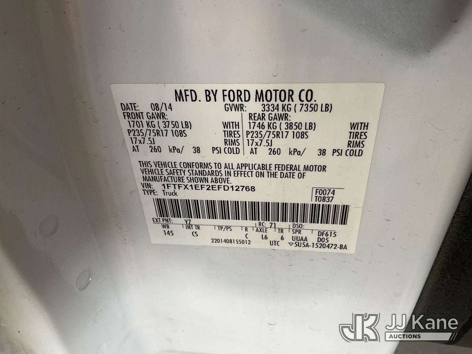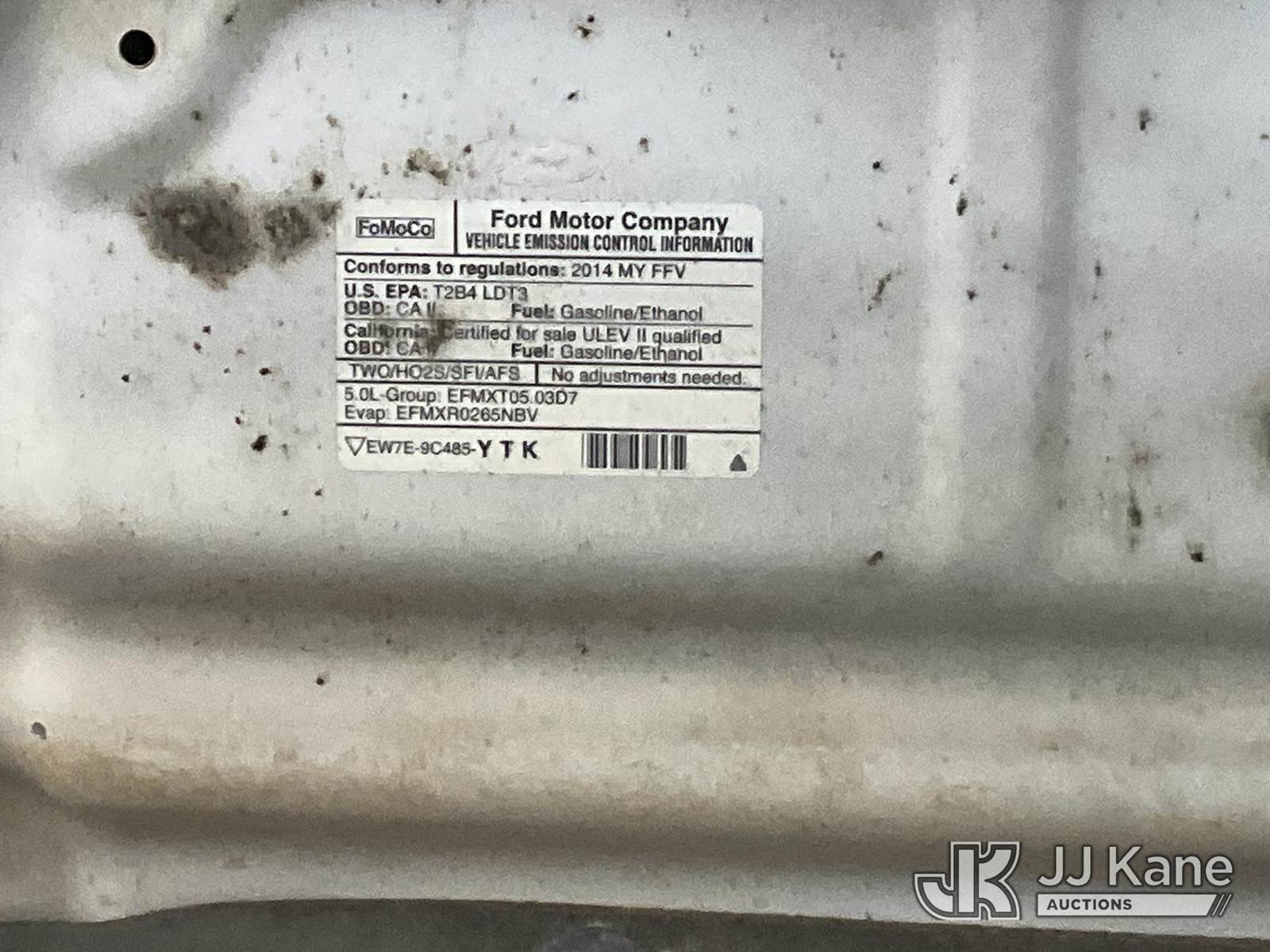 2014 Ford F-150 Extended-Cab Pickup Truck, 8-cyl gas, 6-Speed Automatic, 4WD, A/C, with Tow package, toolbox, bedcover, (235,483 miles) (Runs & Moves) This is a Titled Item NOTE: This unit is being sold AS IS/WHERE IS via Timed Auction and is located in Jurupa Valley, CA. Inspection & preview days for this unit are the 2 business days prior to the first day of items closing for this auction, item is located at 4510 Muth Way Jurupa Valley, CA 92509 and hours of operations are 8a-4p. For pre-sale questions, please contact please contact Office Staff @ (310) 353-7140. Dealer License Number 45696. (Buyer is responsible for removal. Assistance by consignor or JJ Kane Auctioneers is not assured.)