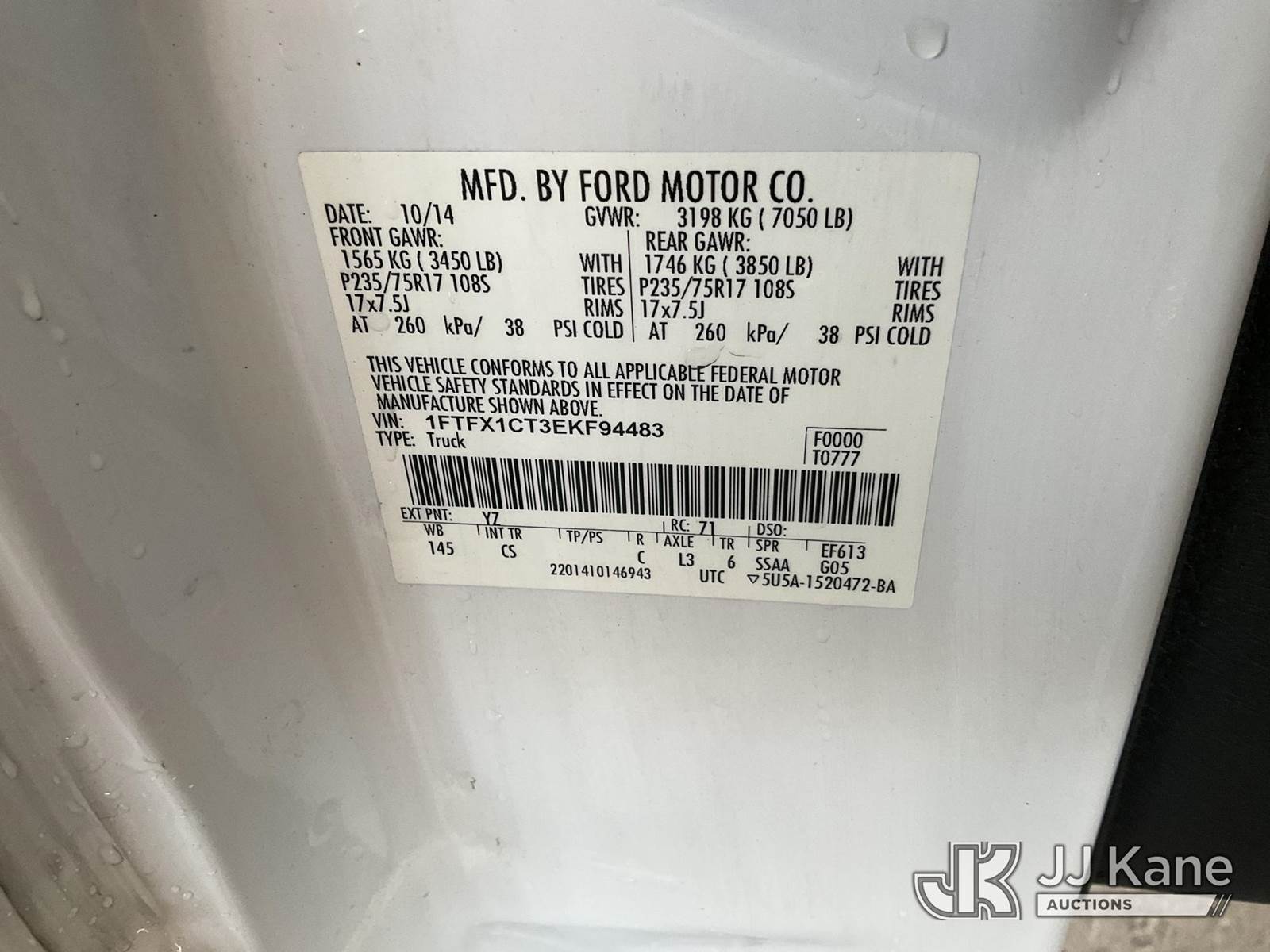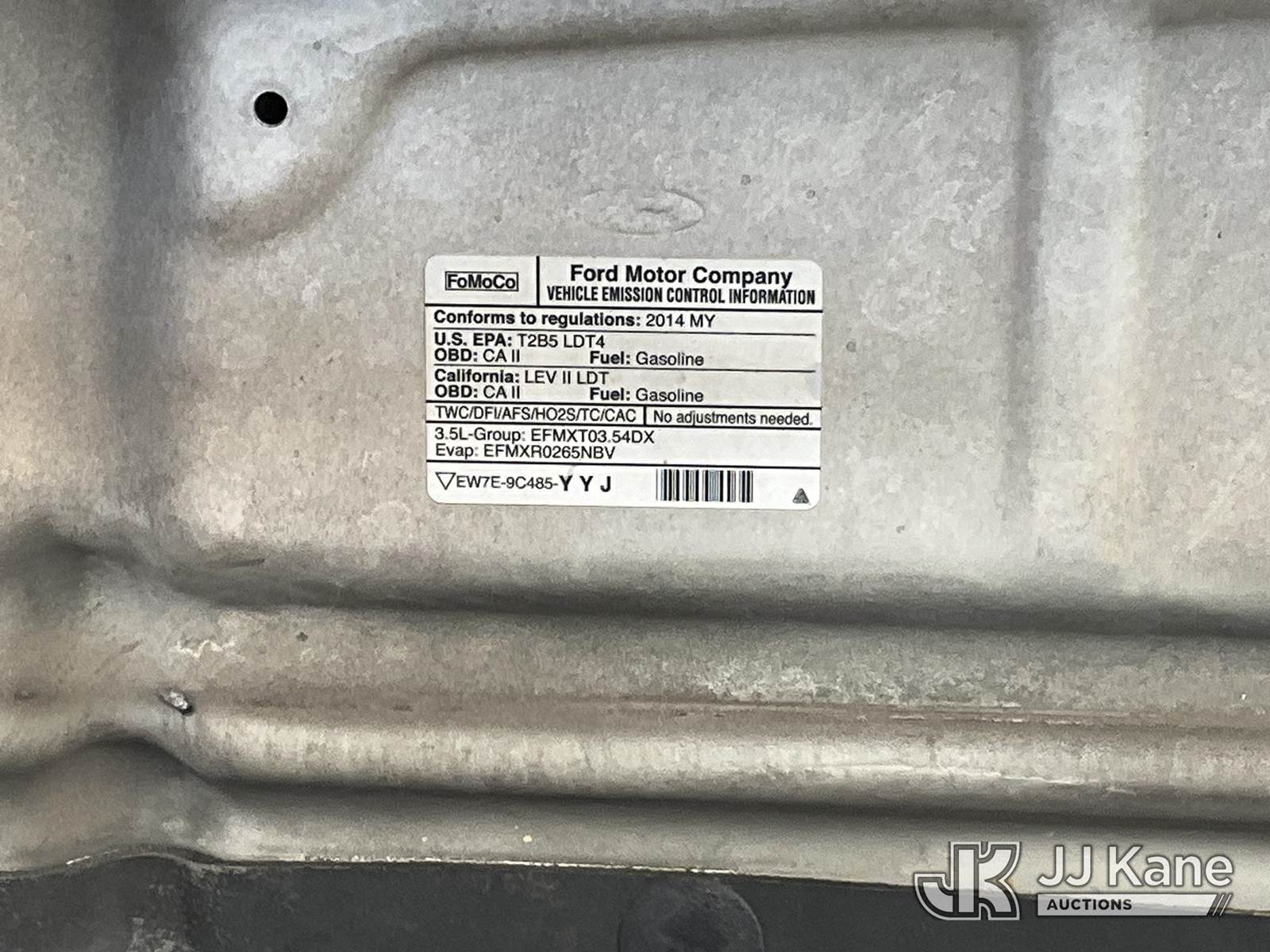 2014 Ford F-150 Extended-Cab Pickup Truck, s/n 1FTFX1CT3EKF94483, 3.5L V6 TURBO RWD, GAS, 6-Speed Automatic, A/C, with Tow package, toolbox, (220,357 miles) (Runs & Moves) This is a Titled Item NOTE: This unit is being sold AS IS/WHERE IS via Timed Auction and is located in Jurupa Valley, CA. Inspection & preview days for this unit are the 2 business days prior to the first day of items closing for this auction, item is located at 4510 Muth Way Jurupa Valley, CA 92509 and hours of operations are 8a-4p. For pre-sale questions, please contact please contact Office Staff @ (310) 353-7140. Dealer License Number 45696. (Buyer is responsible for removal. Assistance by consignor or JJ Kane Auctions is not assured.)
