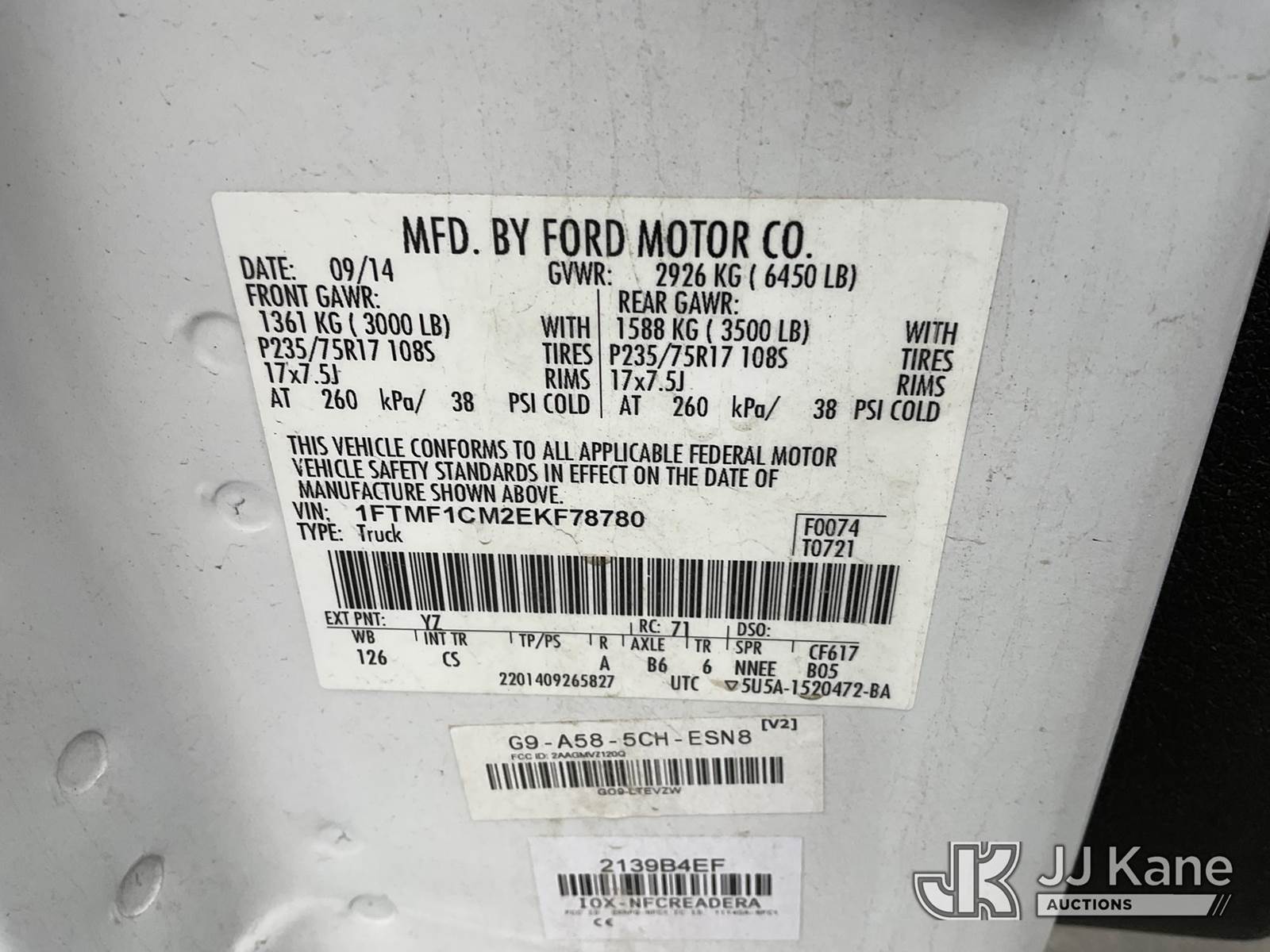 2014 Ford F-150 Pickup Truck, s/n 1FTMF1CM2EKF78780, 6-cyl gas, 6-Speed Automatic, A/C, with Tool Box, Tow Package, (091,908 miles) (Runs & Moves) (Check Engine Light On, Engine Runs Rough) (Bidding Restricted to Licensed Vehicle Dealers Only), This is a Titled Item NOTE: This unit is being sold AS IS/WHERE IS via Timed Auction and is located in Jurupa Valley, CA. Inspection & preview days for this unit are the 2 business days prior to the first day of items closing for this auction, item is located at 4510 Muth Way Jurupa Valley, CA 92509 and hours of operations are 8a-4p. For pre-sale questions, please contact please contact Office Staff @ (310) 353-7140. Dealer License Number 45696. (Buyer is responsible for removal. Assistance by consignor or JJ Kane Auctioneers is not assured.)