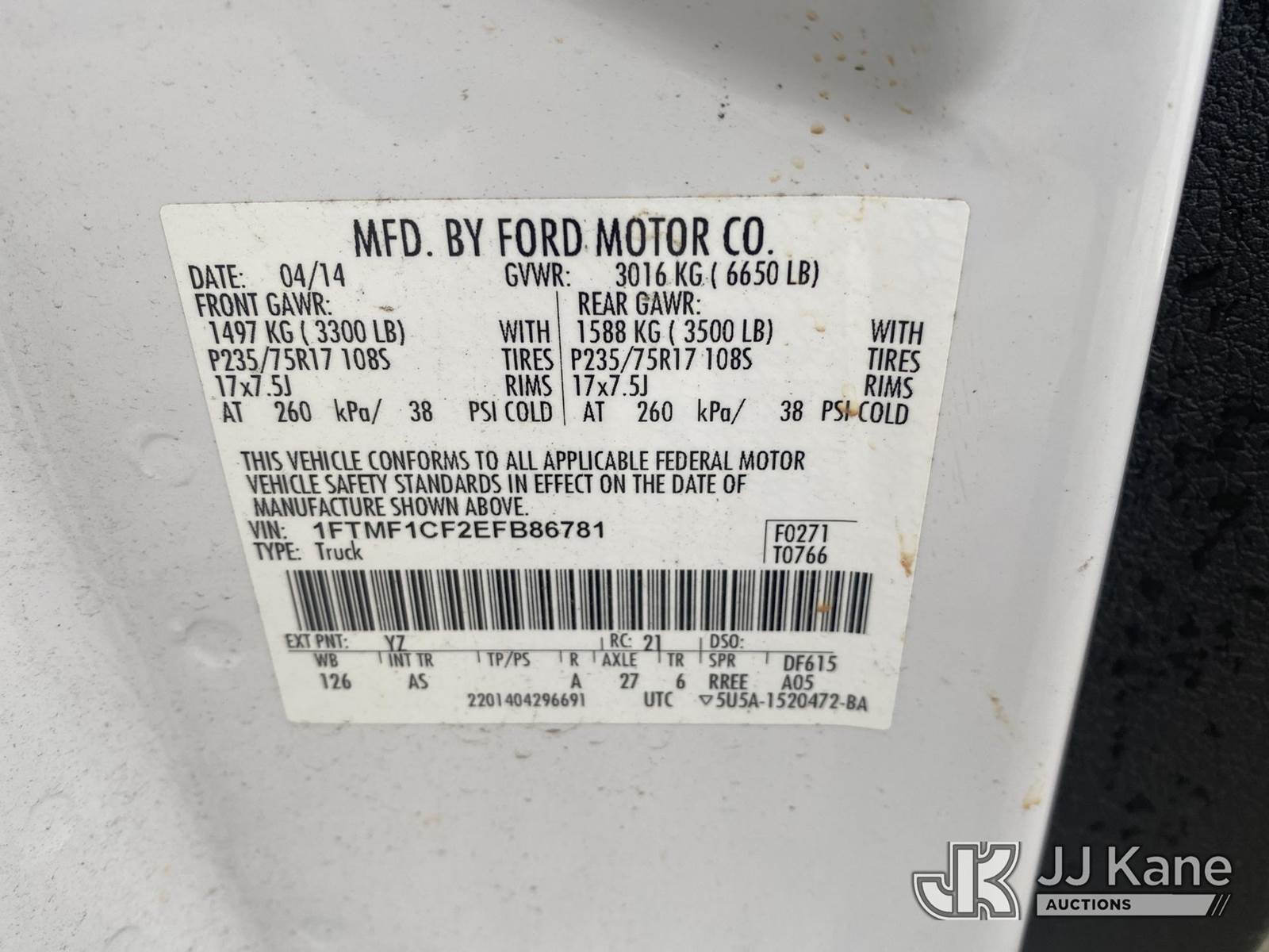 2014 Ford F-150 Pickup Truck, 8-cyl gas, Auto, RWD, A/C, (52,539 miles) (Runs & Moves) (Jump To Start, Body/ Paint Damage ) This is a Titled Item NOTE: This unit is being sold AS IS/WHERE IS via Timed Auction and is located in Villa Rica, GA. Inspection & preview days for this unit are the 2 business days prior to the first day of items closing for this auction, item is located at 100 Liberty Rd Villa Rica, GA 30180 and hours of operations are 8a-4p. For pre-sale questions, please contact Office Staff @ (470) 590-8453. (Buyer is responsible for removal. Assistance by consignor or JJ Kane Auctioneers is not assured.)