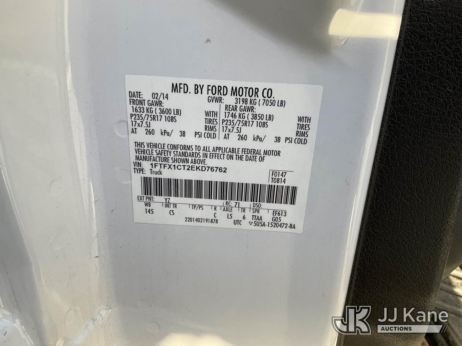 2014 Ford F-150 Pickup Truck, 3.5L V6 TURBO RWD, Gas, 6-Speed Automatic, A/C, with Tow package, True Mileage Unknown (Not Running, Wrecked, Body Damage, Airbag Deployed, Rear Windshield Cracked, Missing Tailgate, Open Recall, Must Be Towed) (Bidding Restricted to Licensed Vehicle Dealers Only), This is a Titled Item NOTE: This unit is being sold AS IS/WHERE IS via Timed Auction and is located in Jurupa Valley, CA. Inspection & preview days for this unit are the 2 business days prior to the first day of items closing for this auction, item is located at 4510 Muth Way Jurupa Valley, CA 92509 and hours of operations are 8a-4p. For pre-sale questions, please contact please contact Office Staff @ (310) 353-7140. Dealer License Number 45696. (Buyer is responsible for removal. Assistance by consignor or JJ Kane Auctions is not assured.)