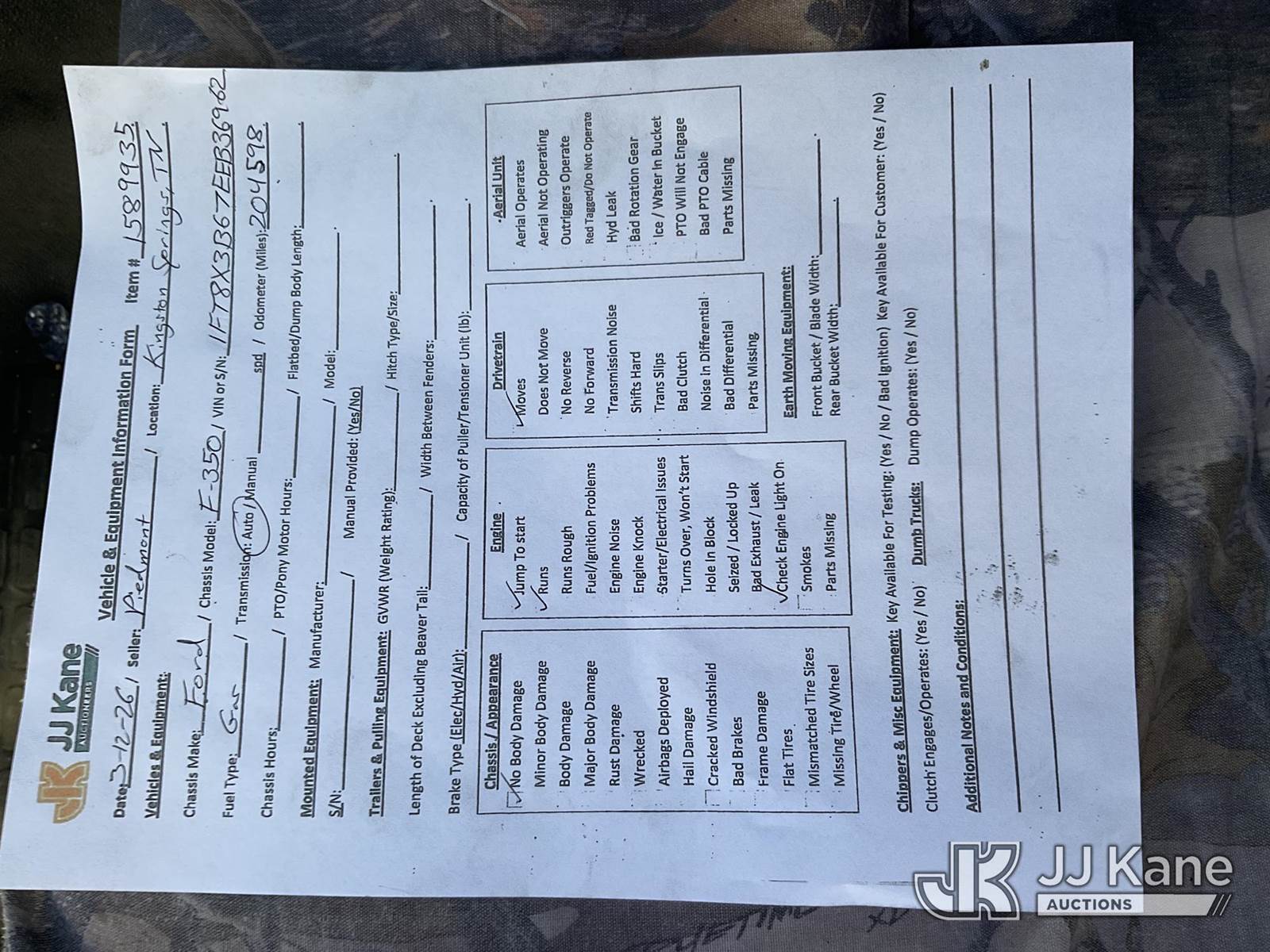 2014 Ford F-350 SD Extended-Cab Service Truck, 6.2L V8 OHV 16V 4WD, GAS, Auto, A/C, (204,598 miles) (Runs & Moves) (Check Engine Light On) This is a Titled Item NOTE: This unit is being sold AS IS/WHERE IS via Timed Auction and is located in Kingston Springs, TN. Inspection & preview days for this unit are by appointment only; please contact us at contact@jjkane.com or 84-Go-JJKane for more details. (Buyer is responsible for removal. Assistance by consignor or JJ Kane Auctions is not assured.)
