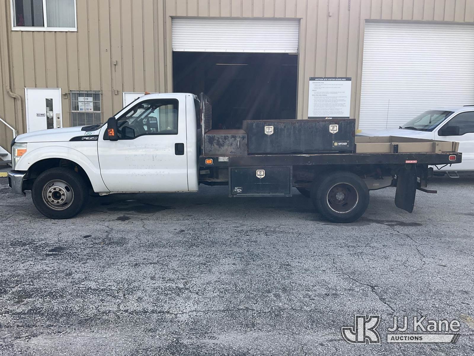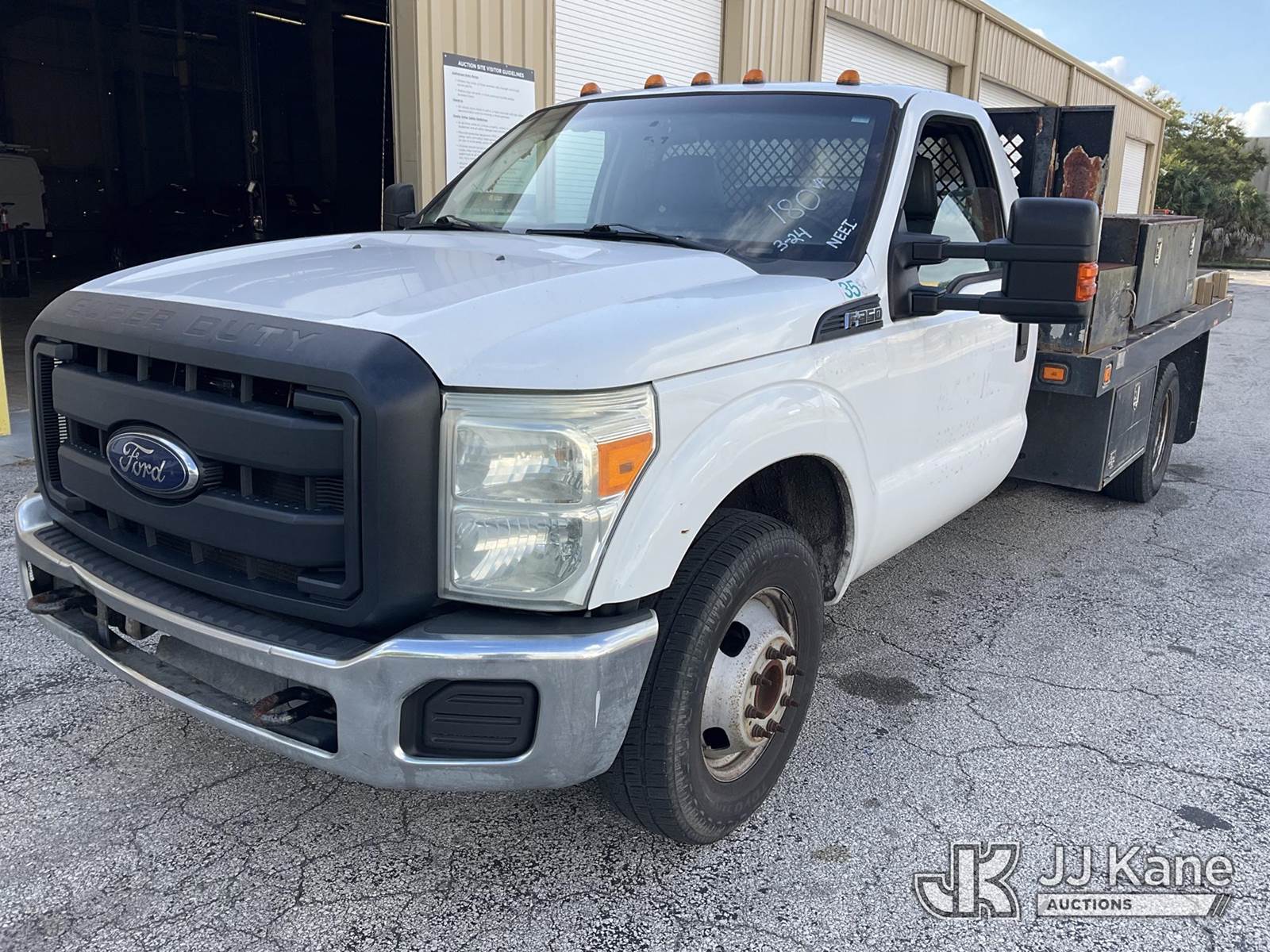 2014 Ford F-350 SD Flatbed Truck, 8-cyl gas, RWD, 6-Speed Automatic, A/C, (217,488 miles) (Runs & Moves) (ABS Light On, Body Damage & Rust, Passenger Window Panel Missing) (FL Residents Purchasing Titled Items – tax, title & registration fees will be collected at the maximum rate of $400.00 under 25,999 and $800.00 for Over 26,000 and $250.00 for Trailers – Proof of insurance is mandatory; Out of State Residents Purchasing Title Items – tax will be collected based upon your state rate) This is a Titled Item NOTE: This unit is being sold AS IS/WHERE IS via Timed Auction and is located in West Palm Beach, FL. Inspection & preview days for this unit are the 2 business days prior to the first day of items closing for this auction, item is located at 2570 Old Okeechobee Rd West Palm Beach, FL 33409 and hours of operations are 8a-4p. For pre-sale questions, please contact Andy Garcia @ (561) 215-0085. (Buyer is responsible for removal. Assistance by consignor or JJ Kane Auctions is not assured.)