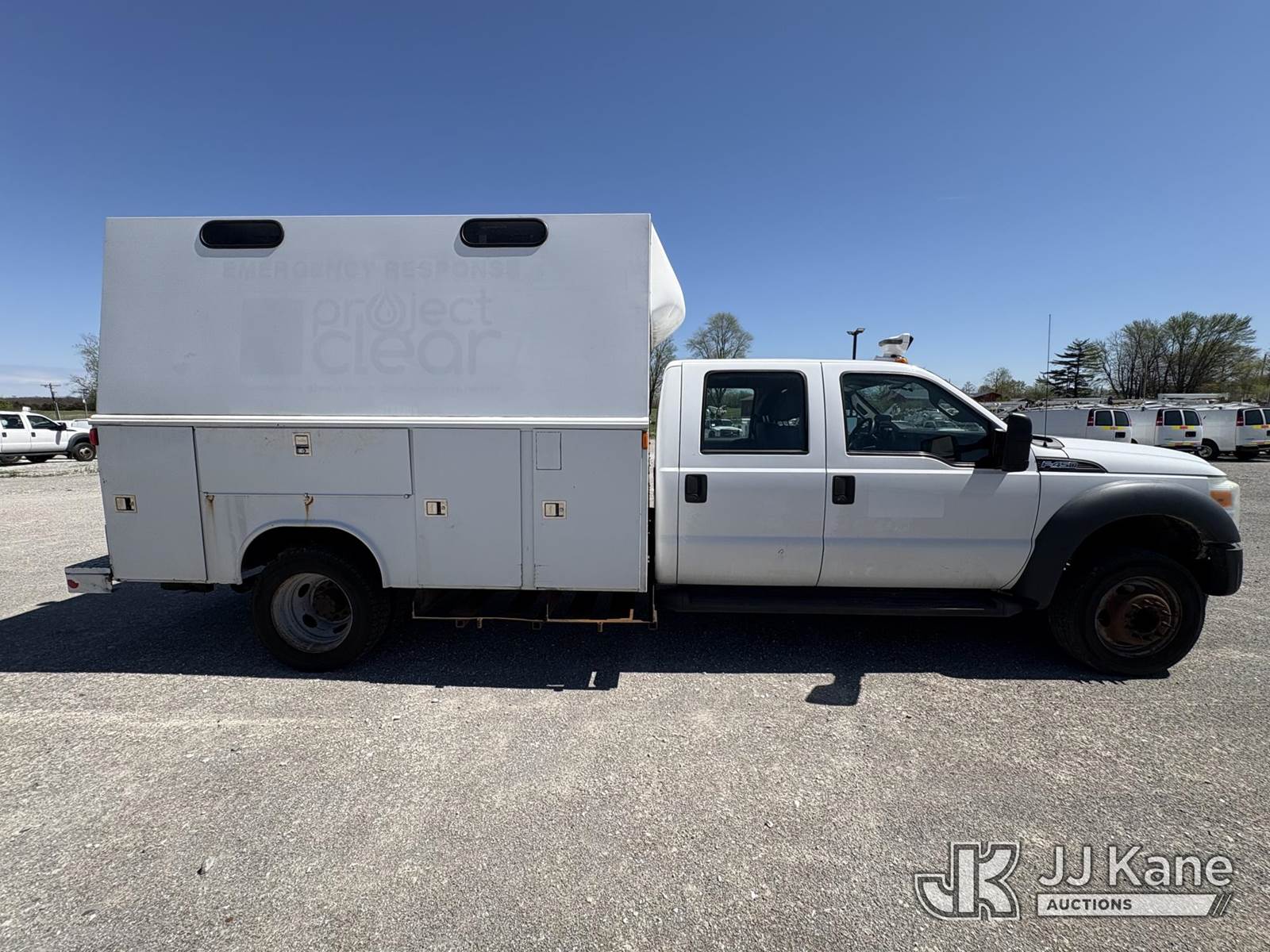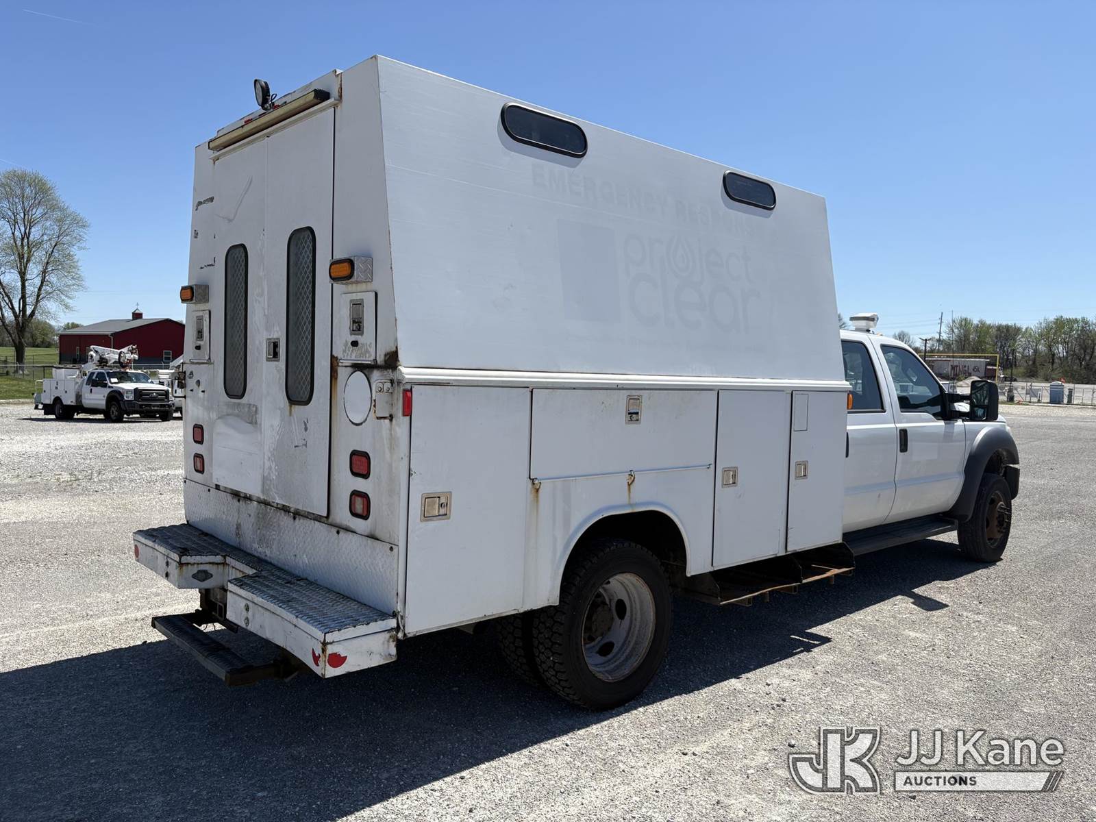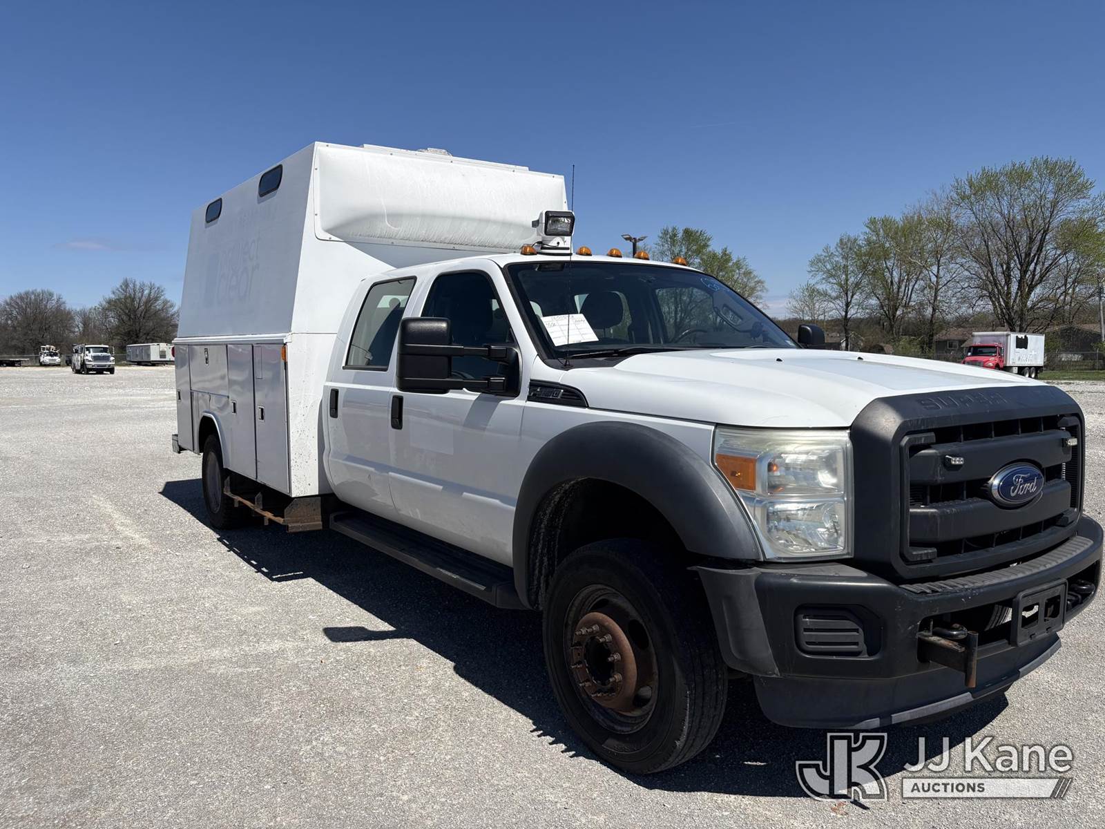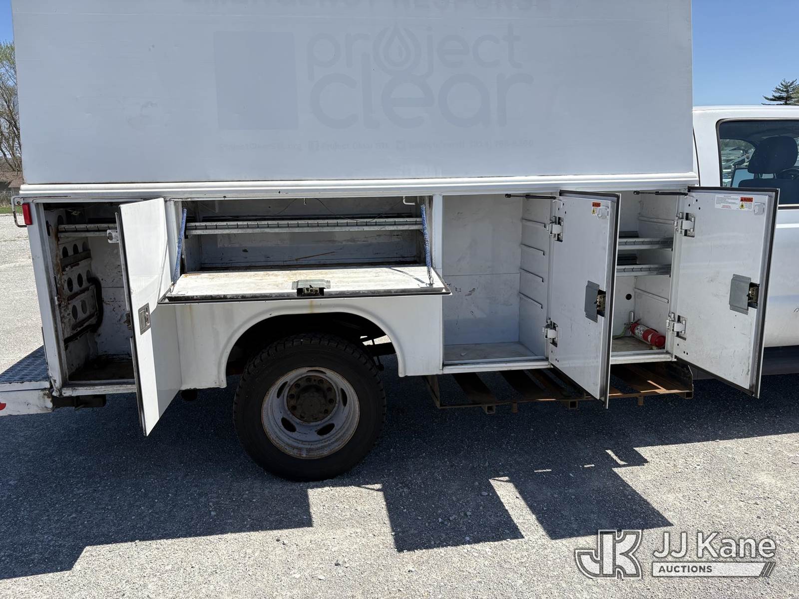 2014 Ford F-450 SD Crew-Cab Enclosed Service Truck, s/n 1FD0W4GY5EEB42822, 10-cyl gas, Auto, A/C, (136,807 miles) ((Runs & Moves) ) (Reads 21,908 hours) This is a Titled Item NOTE: This unit is being sold AS IS/WHERE IS via Timed Auction and is located in Hawk Point, MO. Inspection & preview days for this unit are the 2 business days prior to the first day of items closing for this auction, item is located at 25 State Highway A Hawk Point, MO 63349 and hours of operations are 8a-4p. For pre-sale questions, please contact Adam Stanek at (636) 295-1594. (Buyer is responsible for removal. Assistance by consignor or JJ Kane Auctions is not assured.)