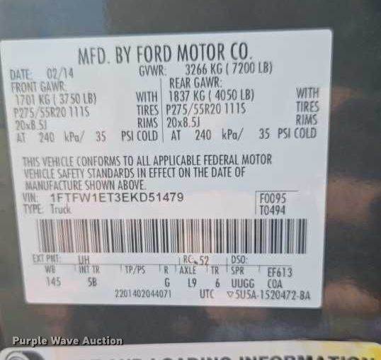 VIN: 1FTFW1ET3EKD51479