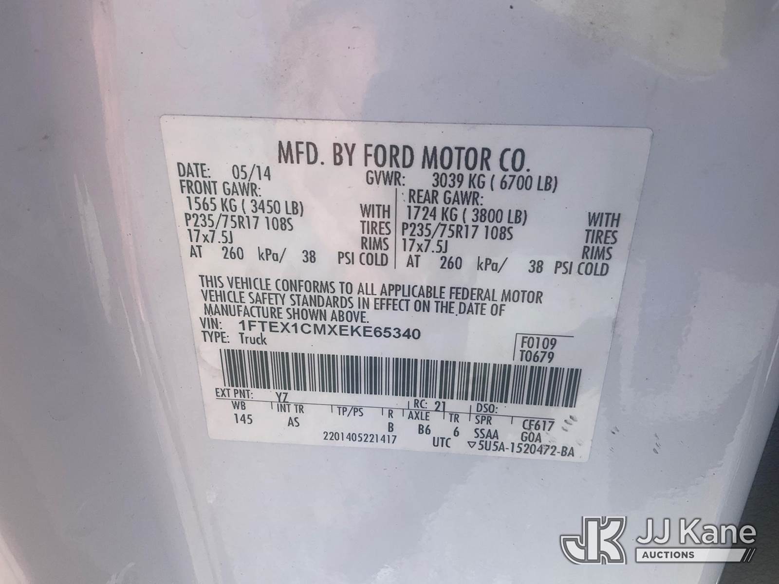 2014 Ford F150 Extended-Cab Pickup Truck, 6-cyl, Auto, Dual Fuel (CNG & Gas), A/C, (159,310 miles) (Runs & Moves) (Paint Damage ) (Bidding Restricted to Licensed Vehicle Dealers and Out of State Buyers Only), This is a Titled Item NOTE: This unit is being sold AS IS/WHERE IS via Timed Auction and is located in China Grove, NC. Inspection & preview days for this unit are the 2 business days prior to the first day of items closing for this auction, item is located at 820 E NC Hwy 152 China Grove, NC 28023 and hours of operations are 8a-4p. For pre-sale questions, please contact Office Staff @ (704) 674-1113. (Buyer is responsible for removal. Assistance by consignor or JJ Kane Auctioneers is not assured.)