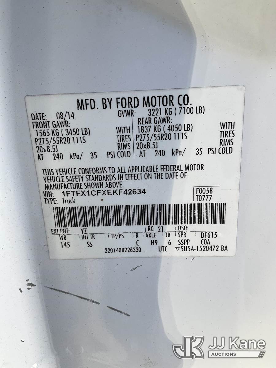 2014 Ford F150 Extended-Cab Pickup Truck, 5.0L V8 gas, RWD, 6-Speed Automatic, A/C, (276,808 miles) (Runs & Moves) (Body/Paint Damage) This is a Titled Item NOTE: This unit is being sold AS IS/WHERE IS via Timed Auction and is located in Ocala, FL. Inspection & preview days for this unit are by appointment only; please contact us at contact@jjkane.com or 84-Go-JJKane for more details. For more information & removal arrangements please contact Mike Lessard @ (352) 629-6677. (Buyer is responsible for removal. Assistance by consignor or JJ Kane Auctions is not assured.)
