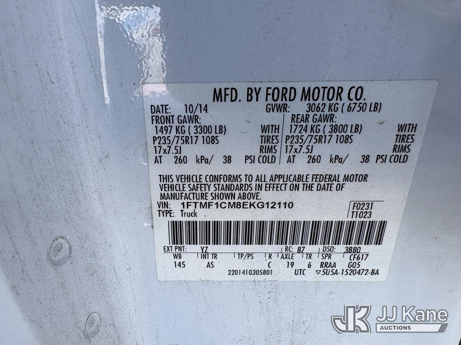 2014 Ford F150 Pickup Truck, 3.7L V6 DOHC 24V gas, RWD, 6-Speed Automatic, A/C, (119,510 miles) (Runs & Moves) This is a Titled Item NOTE: This unit is being sold AS IS/WHERE IS via Timed Auction and is located in Hawk Point, MO. Inspection & preview days for this unit are the 2 business days prior to the first day of items closing for this auction, item is located at 25 State Highway A Hawk Point, MO 63349 and hours of operations are 8a-4p. For pre-sale questions, please contact Adam Stanek at (636) 295-1594. (Buyer is responsible for removal. Assistance by consignor or JJ Kane Auctions is not assured.)