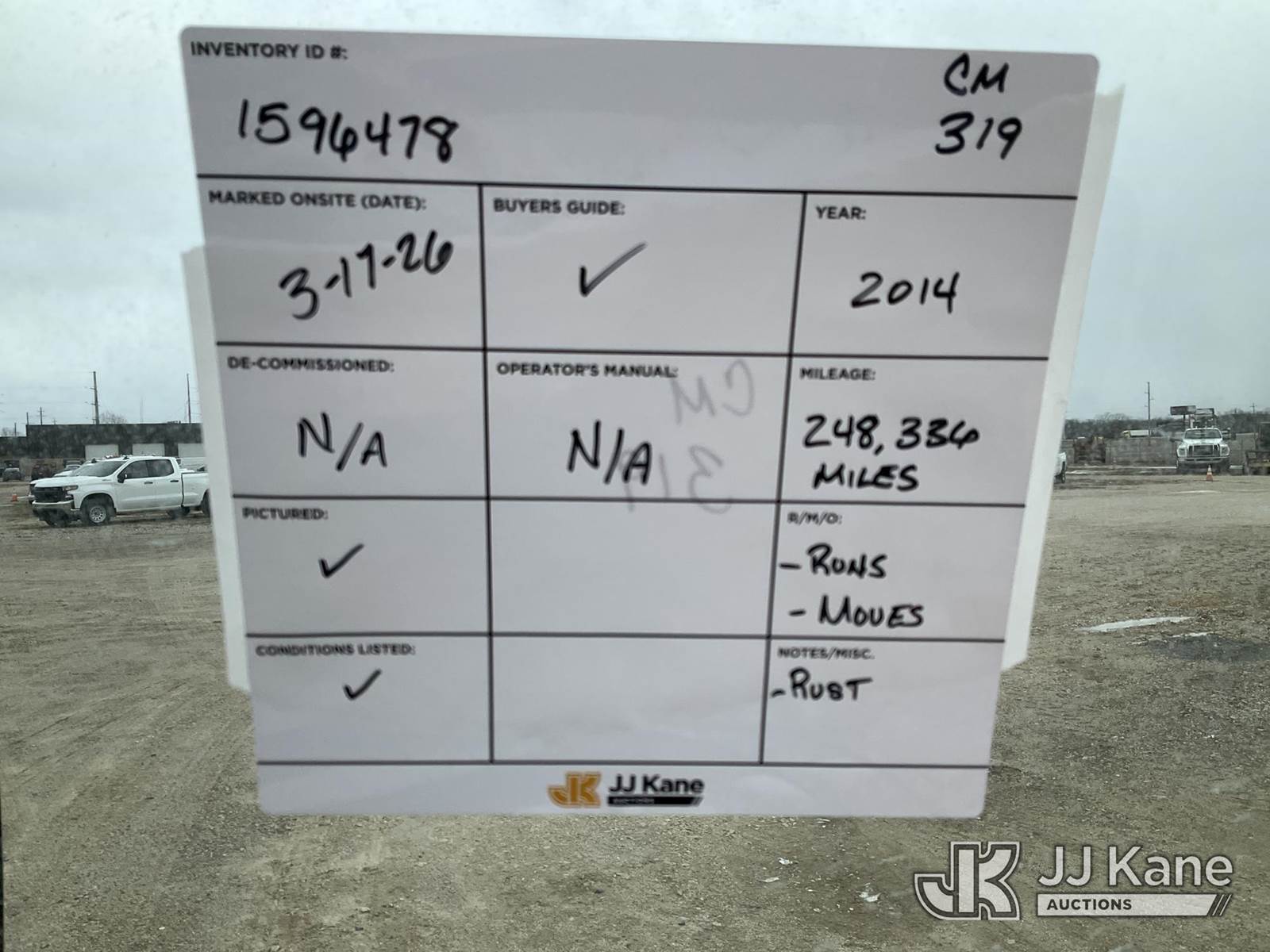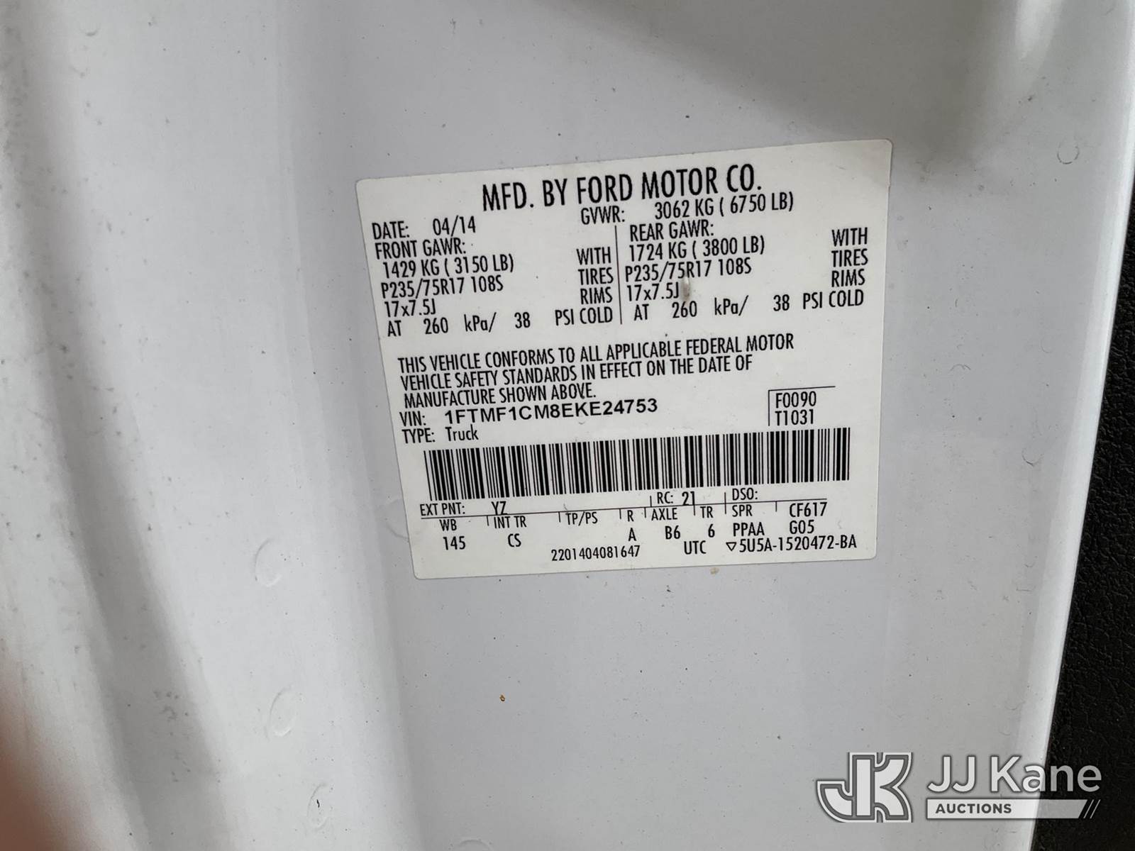 2014 Ford F150 Pickup Truck, 3.7L V6 DOHC 24V RWD, GAS, Auto, A/C, with service cap, (248,336 miles) (Runs, Moves)( Rust) This is a Titled Item NOTE: This unit is being sold AS IS/WHERE IS via Timed Auction and is located in Charlotte, MI. Inspection & preview days for this unit are the 2 business days prior to the first day of items closing for this auction, item is located at 750 Island Hwy Charlotte, MI 48813 and hours of operations are 8a-4p. For pre-sale questions, please contact Corey Cook at (517) 983-0796 or corey.cook@jjkane.com (Buyer is responsible for removal. Assistance by consignor or JJ Kane Auctions is not assured.)