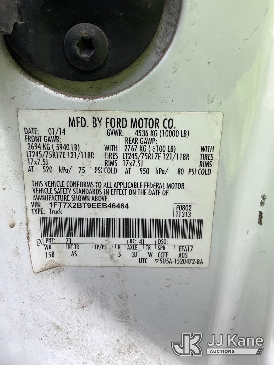 2014 Ford F250 4x4 Extended-Cab Pickup Truck, 6.7L V8 OHV 16V diesel, 6-Speed Automatic, A/C, with service cap, (129,177 miles) (Runs & Moves) (Rust Damage, Rear Seat Removed, Chipped Windshield) (Seller States: Bad Exhaust, Weak Motor, Runs) (Reads 12,343 hours) This is a Titled Item NOTE: This unit is being sold AS IS/WHERE IS via Timed Auction and is located in South Beloit, IL. Inspection & preview days for this unit are the 2 business days prior to the first day of items closing for this auction, item is located at 14354 Dearborn Ave South Beloit, IL and hours of operations are 8a-4p. For pre-sale questions, please contact Derek Eklund at (608) 904-0618 or (derek.eklund@jjkane.com). (Buyer is responsible for removal. Assistance by consignor or JJ Kane Auctions is not assured.)