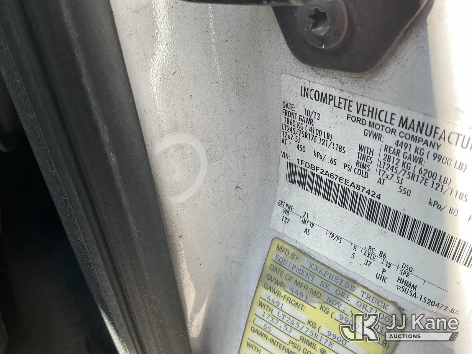 2014 Ford F250 Service Truck, 6.2L V8 OHV 16V gas, RWD, 6-Speed Automatic, A/C, True Mileage Unknown (Not Running, Condition Unknown) (No Key, Drive Shaft Not Connected, Paint/Body Damage) This is a Titled Item NOTE: This unit is being sold AS IS/WHERE IS via Timed Auction and is located in Thonotosassa, FL. Inspection & preview days for this unit are the 2 business days prior to the first day of items closing for this auction, item is located at 11720 N US 301 Thonotosassa, Fl 33592 and hours of operations are 8a-4p. For pre-sale questions, please contact Office Staff @ (813) 986-2485. (Buyer is responsible for removal. Assistance by consignor or JJ Kane Auctions is not assured.)