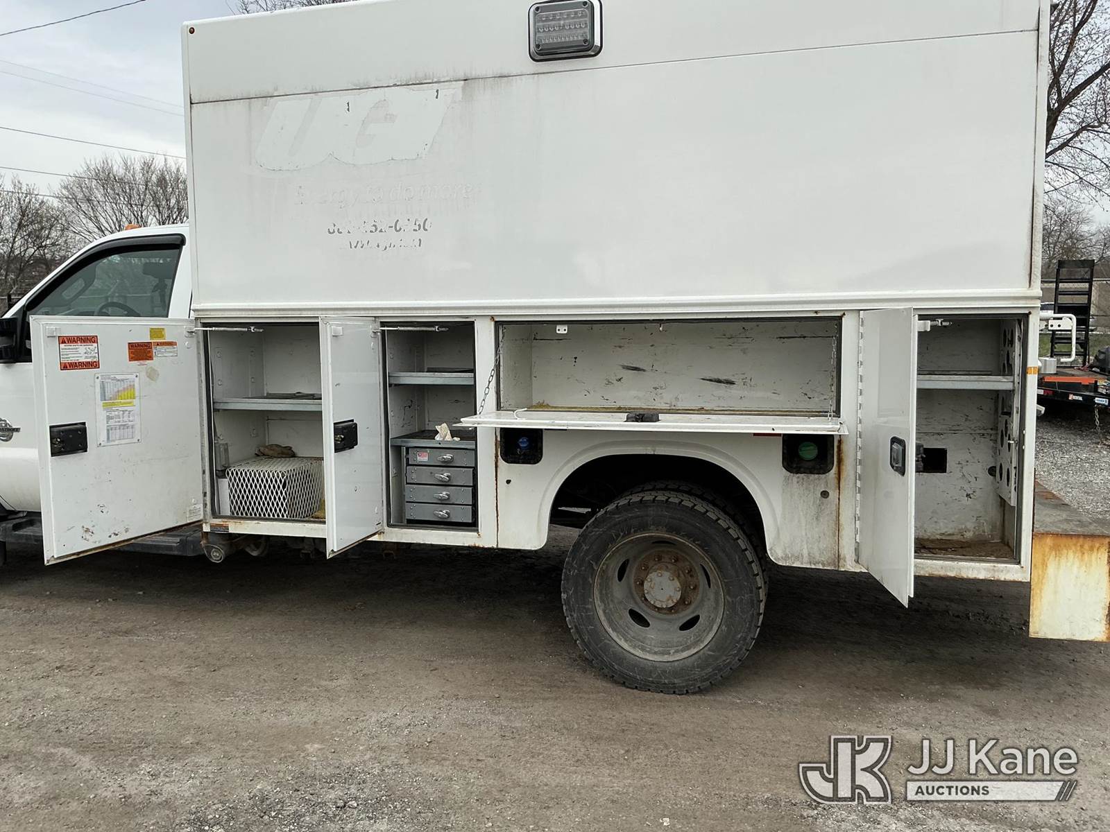 2014 Ford F550 4x4 Enclosed Utility/Air Compressor Truck, 6.7L diesel, Auto, A/C, (87,772 miles) (Runs & Moves) (TITLE DELAY) This is a Titled Item NOTE: This unit is being sold AS IS/WHERE IS via Timed Auction and is located in Plymouth Meeting, PA. Inspection & preview days for this unit are the 2 business days prior to the first day of items closing for this auction, item is located at 1402 Conshohocken Rd Plymouth Meeting, PA 19462 and hours of operations are 8a-4p. For pre-sale questions, please contact Bruce Thomas @ (267) 887-0392 or bruce.thomas.jr@jjkane.com. (Buyer is responsible for removal. Assistance by consignor or JJ Kane Auctions is not assured.)