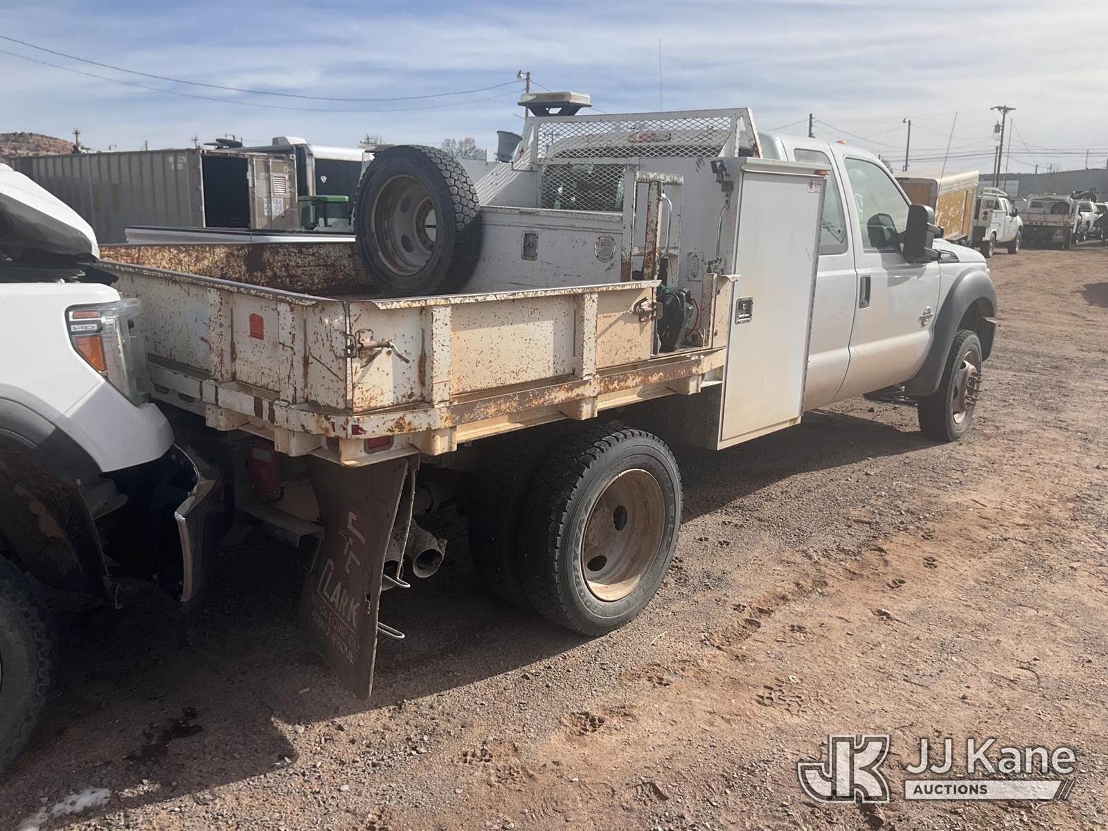 2014 Ford F550 4x4 Extended-Cab Flatbed/Service Truck, 6.7L V8 OHV 16V DIESEL, Auto, A/C, (239,982 miles) (Runs & Moves) (Leaks Fuel, Must Be Towed) This is a Titled Item NOTE: This unit is being sold AS IS/WHERE IS via Timed Auction and is located in Fort Defiance, AZ. Contact Carson Wenner at (480) 617-3620 for removal details. SCHEDULED LOAD-OUT on March 4th - 5th and 11th-12th Buyers must present a RELEASE FORM. Remove all lots within the specified dates to avoid 3rd party towing and holding costs. (Buyer is responsible for removal. Assistance by consignor or JJ Kane Auctions is not assured.)