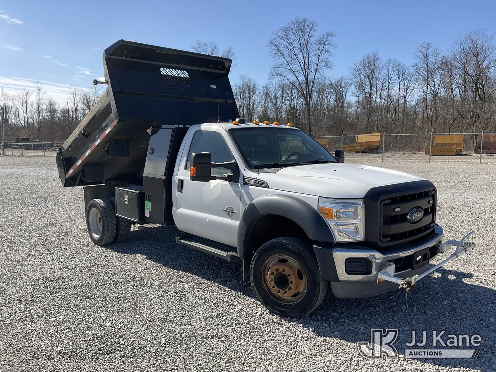 2014 Ford F550 Dump Truck, 6.7L Diesel Auto, A/C, (57,894 miles) (Runs, Moves & Dump Operates) (Slow/Weak Hydraulics, Bad Battery) This is a Titled Item NOTE: This unit is being sold AS IS/WHERE IS via Timed Auction and is located in Verona, KY. Inspection & preview days for this unit are the 2 business days prior to the first day of items closing for this auction, item is located at 2841 Verona-Mudlick Rd Ste B Verona, KY 41092 and hours of operations are 8a-4p. For pre-sale questions, please contact Office Staff @ (502) 612-5080. Auctioneer Michael Whitebread / License # 256617. (Buyer is responsible for removal. Assistance by consignor or JJ Kane Auctions is not assured.)