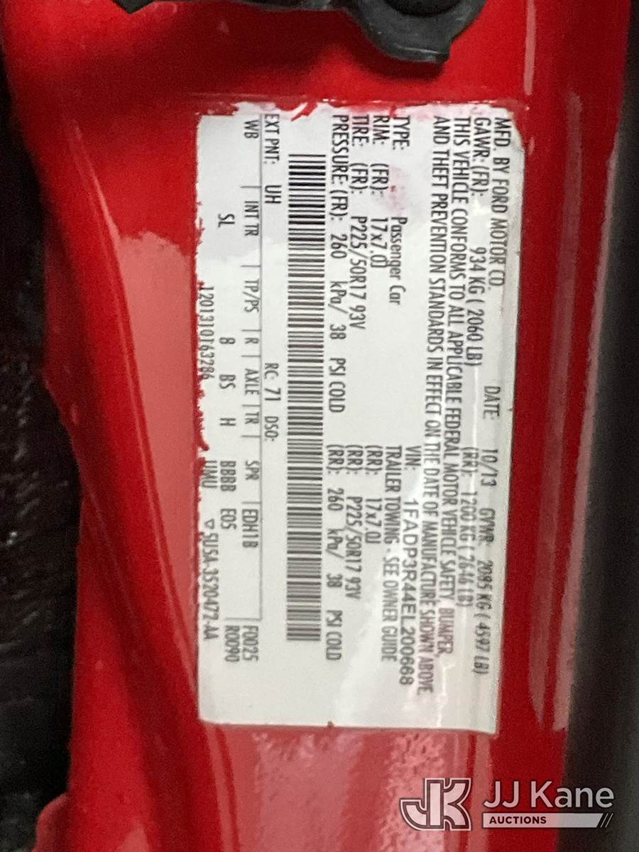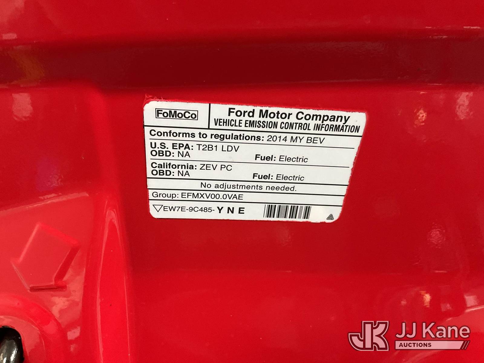 2014 Ford Focus 4-Door Hatch Back, s/n 1FADP3R44EL200668, electric, Continuously Variable Transmission, A/C, (022,528 miles) (Runs & Moves) (Takes Charge, Charger Not Included, 60 Miles Of Range ) This is a Titled Item NOTE: This unit is being sold AS IS/WHERE IS via Timed Auction and is located in Jurupa Valley, CA. Inspection & preview days for this unit are the 2 business days prior to the first day of items closing for this auction, item is located at 4510 Muth Way Jurupa Valley, CA 92509 and hours of operations are 8a-4p. For pre-sale questions, please contact please contact Office Staff @ (310) 353-7140. Dealer License Number 45696. (Buyer is responsible for removal. Assistance by consignor or JJ Kane Auctions is not assured.)