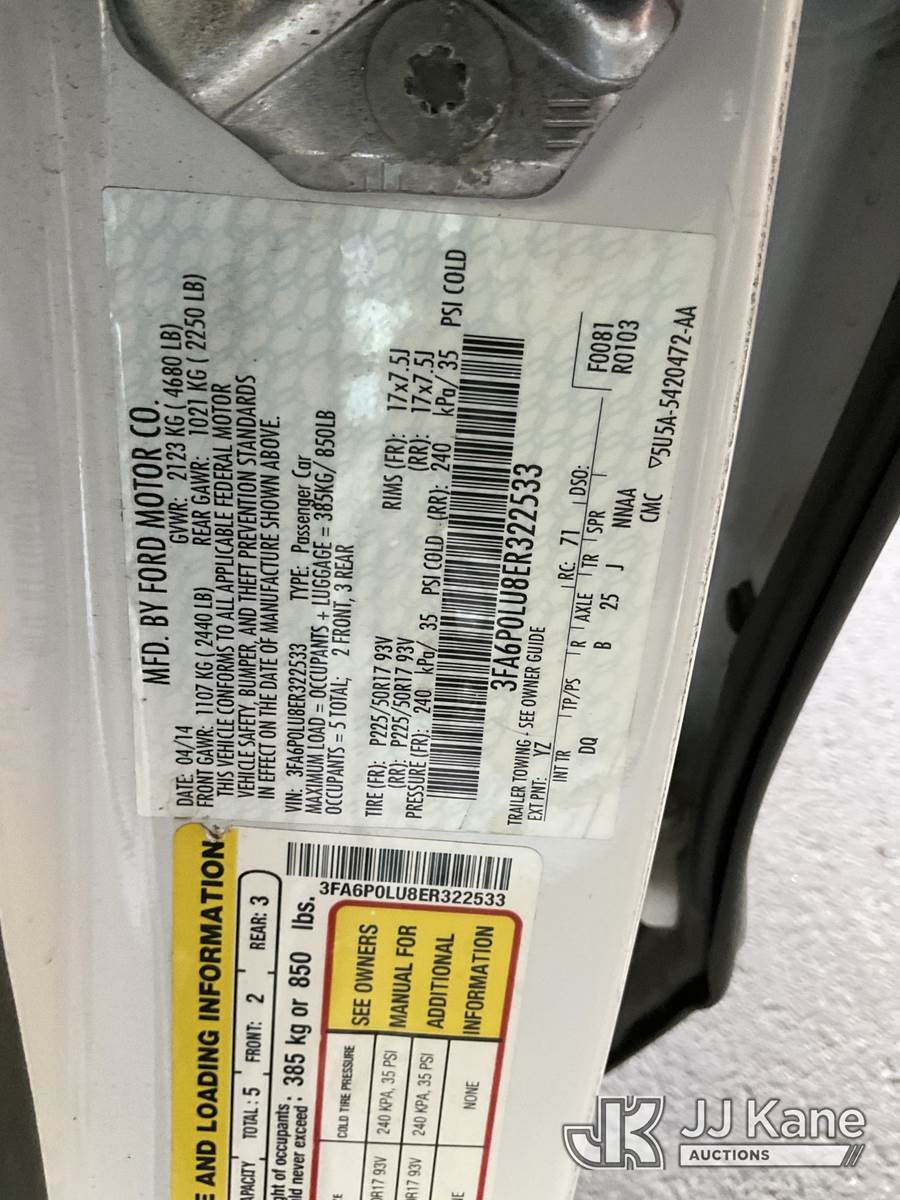 2014 Ford Fusion Hybrid 4-Door Sedan, 4-cyl Hybrid CVT, A/C, (103,885 miles) (Runs & Moves) This is a Titled Item NOTE: This unit is being sold AS IS/WHERE IS via Timed Auction and is located in Jurupa Valley, CA. Inspection & preview days for this unit are the 2 business days prior to the first day of items closing for this auction, item is located at 4510 Muth Way Jurupa Valley, CA 92509 and hours of operations are 8a-4p. For pre-sale questions, please contact please contact Office Staff @ (310) 353-7140. Dealer License Number 45696. (Buyer is responsible for removal. Assistance by consignor or JJ Kane Auctions is not assured.)