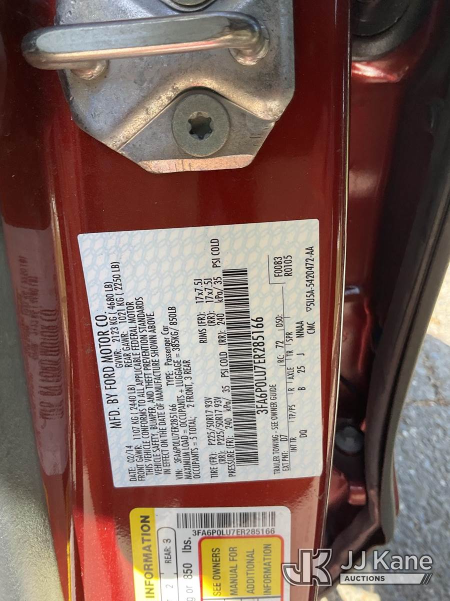 2014 Ford Fusion Hybrid SE 4-Door Sedan, s/n 3FA6P0LU7ER285166, 2.0L L4 DOHC 16V FWD, HYBRID, CVT, A/C, (69,187 miles) (Runs & Moves, Buzzing Sound When AC Is On) This is a Titled Item NOTE: This unit is being sold AS IS/WHERE IS via Timed Auction and is located in Dixon, CA. Inspection & preview days for this unit are the 2 business days prior to the first day of items closing for this auction, item is located at 8668 Sparling Ln Dixon, CA 95620 and hours of operations are 8a-4p. For pre-sale questions, please contact JJ Kane Staff at (707) 678-8060 (dixon@jjkane.com). Dealer License Number 45696. (Buyer is responsible for removal. Assistance by consignor or JJ Kane Auctions is not assured.)