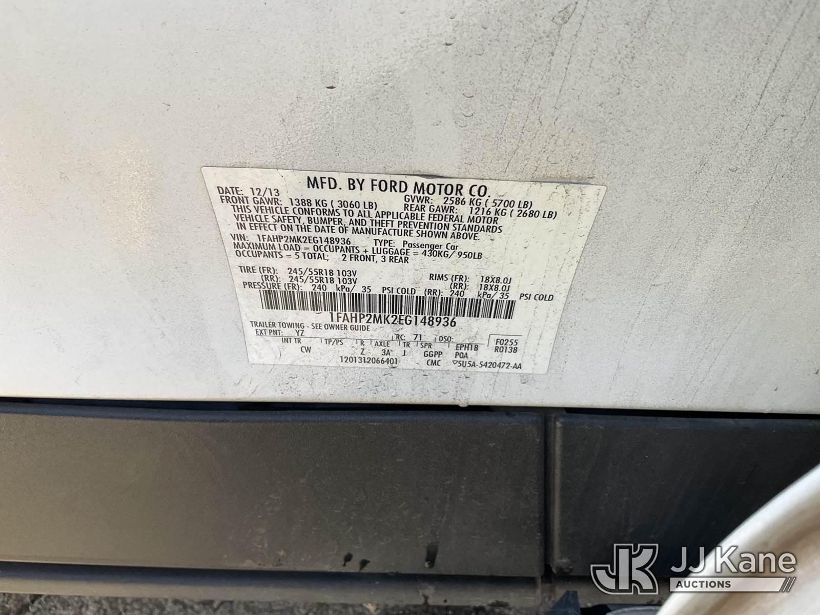 2014 Ford Taurus Police AWD 4-Door Sedan, 6-cyl gas, 6-Speed Automatic, A/C, (86,838 miles) (Runs & Moves) This is a Titled Item NOTE: This unit is being sold AS IS/WHERE IS via Timed Auction and is located in Jurupa Valley, CA. Inspection & preview days for this unit are the 2 business days prior to the first day of items closing for this auction, item is located at 4510 Muth Way Jurupa Valley, CA 92509 and hours of operations are 8a-4p. For pre-sale questions, please contact please contact Office Staff @ (310) 353-7140. Dealer License Number 45696. (Buyer is responsible for removal. Assistance by consignor or JJ Kane Auctions is not assured.)