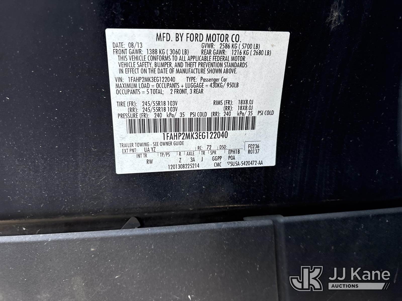 2014 Ford Taurus Police AWD 4-Door Sedan, 3.7L V6 DOHC 24V Gas, 6-Speed Automatic, A/C, (161,385 miles) (Runs & Moves) (Rear Tail Lights Do Not Operate) (Bidding Restricted to Licensed Vehicle Dealers Only), This is a Titled Item NOTE: This unit is being sold AS IS/WHERE IS via Timed Auction and is located in Dixon, CA. Inspection & preview days for this unit are the 2 business days prior to the first day of items closing for this auction, item is located at 8668 Sparling Ln Dixon, CA 95620 and hours of operations are 8a-4p. For pre-sale questions, please contact JJ Kane Staff at (707) 678-8060 (dixon@jjkane.com). Dealer License Number 45696. (Buyer is responsible for removal. Assistance by consignor or JJ Kane Auctions is not assured.)