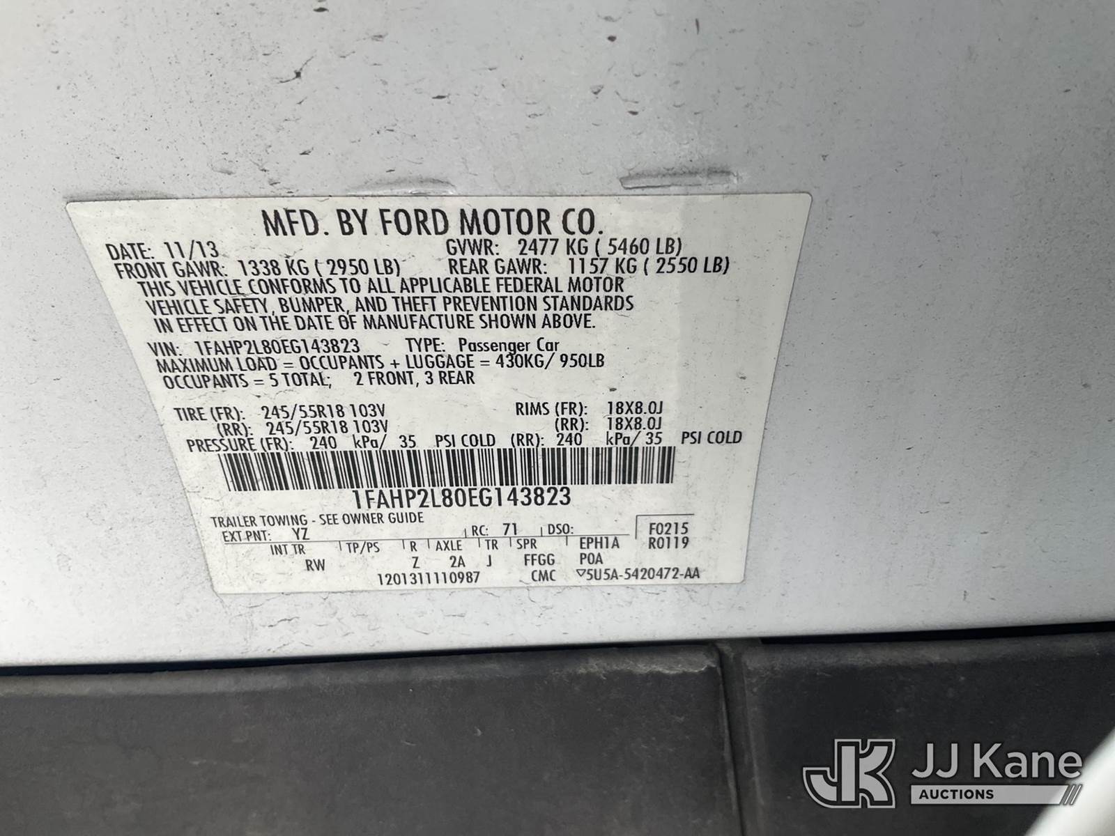 2014 Ford Taurus Police FWD 4-Door Sedan, 3.5L V6 DOHC 24V gas, 6-Speed Automatic, A/C, (84,407 miles) (Runs & Moves) (Jump To Start, Plastic Rear Seat & Divider) This is a Titled Item NOTE: This unit is being sold AS IS/WHERE IS via Timed Auction and is located in Las Vegas, NV. Inspection & preview days for this unit are the 2 business days prior to the first day of items closing for this auction, item is located at 14655 Grand Valley Pkwy Las Vegas, NV 89165 and hours of operations are 8a-4p. Titles executed exactly as bidder registered. Ensure your name and/or business name and address in JJ Kane and/or ProxiBid is correct before bidding. For pre-sale questions, please contact Office Staff @ (801) 519-0123 and provide sale date and lot number. Las Vegas Dealer License Number DLR000053086 / OHV000053094. (Buyer is responsible for removal. Assistance by consignor or JJ Kane Auctions is not assured.)