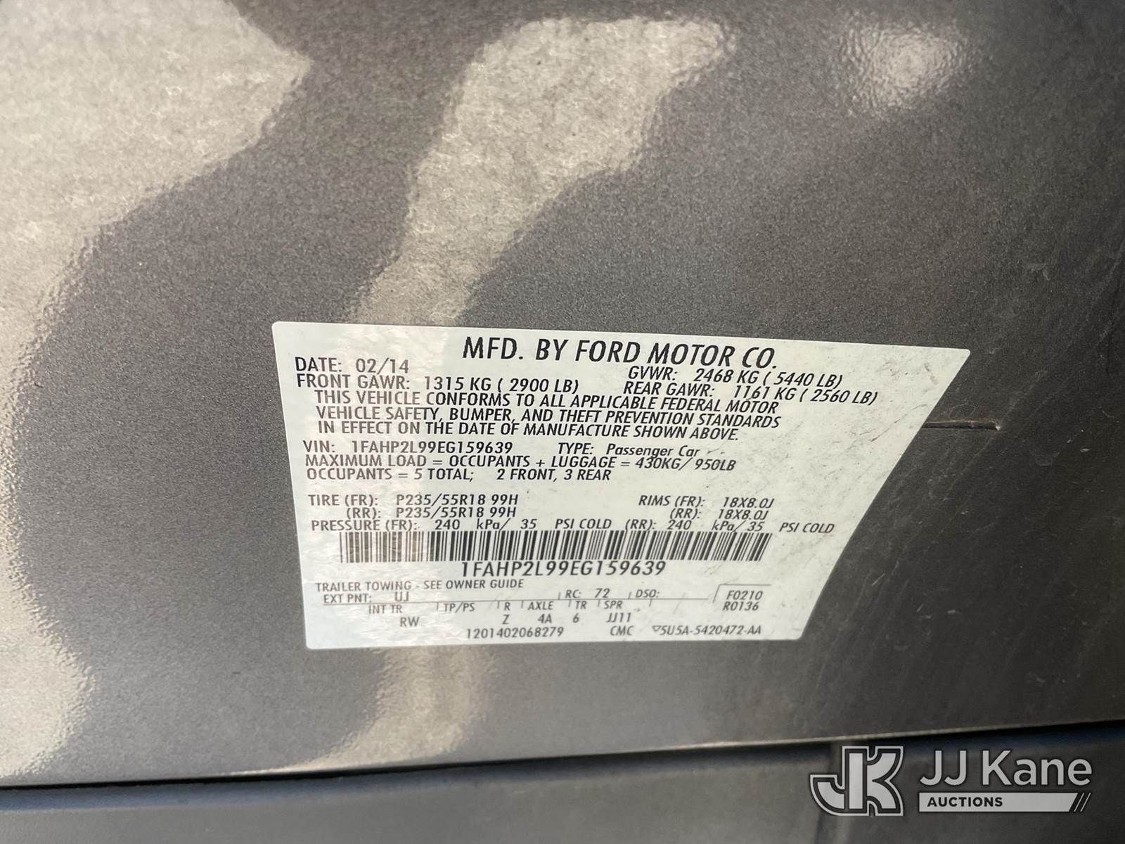 2014 Ford Taurus Police FWD 4-Door Sedan, s/n 1FAHP2L99EG159639, 2.0L L4 DOHC 16V GAS, 6-Speed Automatic, A/C, (38,691 miles) (Runs & Moves) This is a Titled Item NOTE: This unit is being sold AS IS/WHERE IS via Timed Auction and is located in Dixon, CA. Inspection & preview days for this unit are the 2 business days prior to the first day of items closing for this auction, item is located at 8668 Sparling Ln Dixon, CA 95620 and hours of operations are 8a-4p. For pre-sale questions, please contact JJ Kane Staff at (707) 678-8060 (dixon@jjkane.com). Dealer License Number 45696. (Buyer is responsible for removal. Assistance by consignor or JJ Kane Auctions is not assured.)