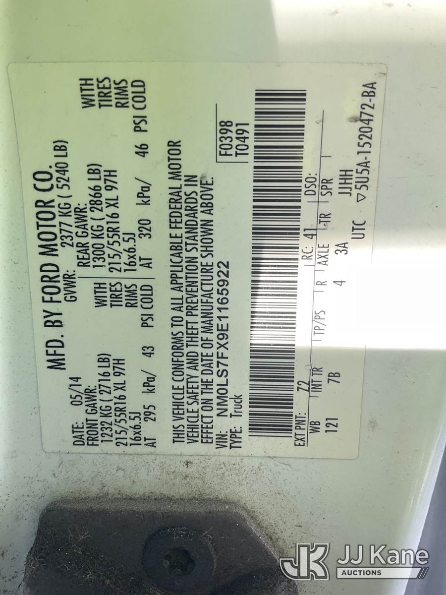 2014 Ford Transit Connect XLT LWB Mini Cargo Van, 1.6L L4 DOHC 16V gas, FWD, 6-Speed Automatic, A/C, (64,342 miles) (Runs & Moves) (Paint Damage) This is a Titled Item NOTE: This unit is being sold AS IS/WHERE IS via Timed Auction and is located in South Beloit, IL. Inspection & preview days for this unit are the 2 business days prior to the first day of items closing for this auction, item is located at 14354 Dearborn Ave South Beloit, IL and hours of operations are 8a-4p. For pre-sale questions, please contact Derek Eklund at (608) 904-0618 or (derek.eklund@jjkane.com). (Buyer is responsible for removal. Assistance by consignor or JJ Kane Auctions is not assured.)