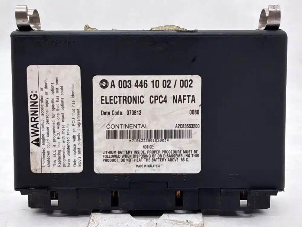 (Used) 2011 / 2015 Freightliner, CAB CONTROL MODULE BODY ECM- Part Number: A 003 446 10 02 / 002, Serial Number: 7106332800102003, ELECTRONIC CPC NAFTA, Date Code: 070813, 0080, A2C83553200, 3 Rectangular Plug with 18 Pins each, 1 Rectangular Plug with 21 Pins, Reference images for condition. For more information about this item. give us a call. We ship Worldwide! (CRG HEAVY TRUCK PARTS) 929 W PULASKI HWY, ELKTON MD 21921