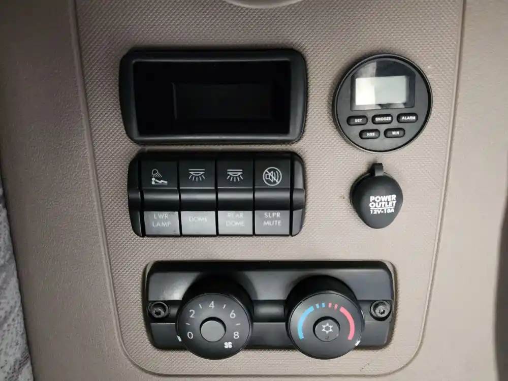 (Used) 2014 Freightliner Cascadia 125, SLEEPER CONTROL PANEL- ALARM CLOCK- TEMPERATURE CONTROL ASSEMBLY BUNK- Settings: Fan Speed, Temp, Controls: LWR Lamp, Dome Light, Rear Dome Light, SLPR MUTE, Material: Plastic, Reference images for condition, For more information about this item, give us a call. We ship Worldwide! (CRG HEAVY TRUCK PARTS) 929 W PULASKI HWY ELKTON, MD 21921, Material: Plastic