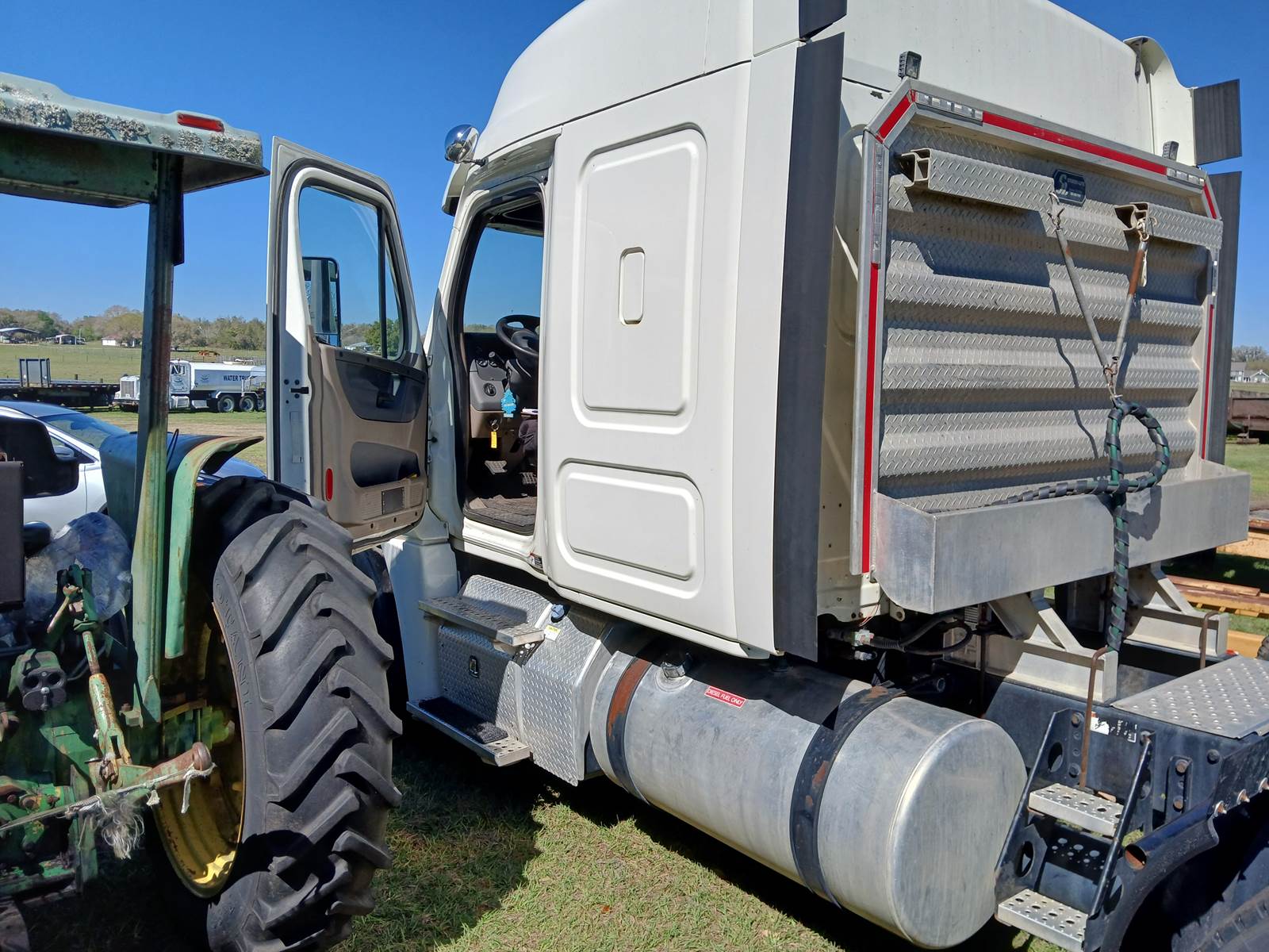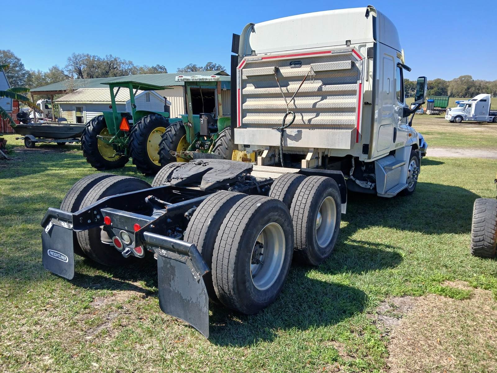 2014 Freightliner single sleeper. Detroit D15, 455 H.P., Eaton 10 spd. tran. Tri-axle. Good tires and clean exterior and interior. Air hose accessory.