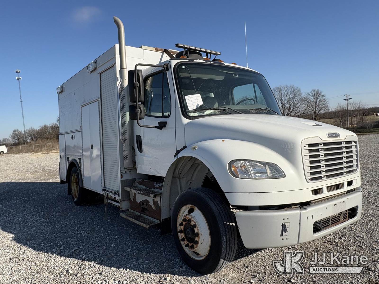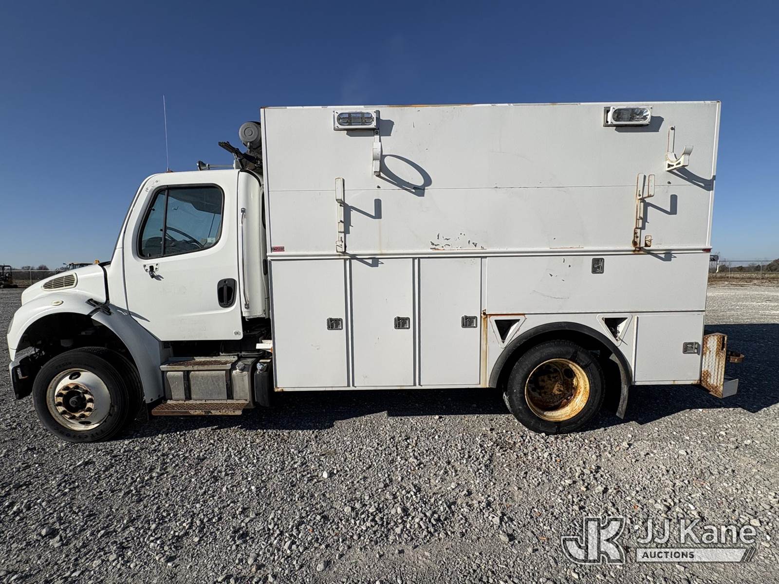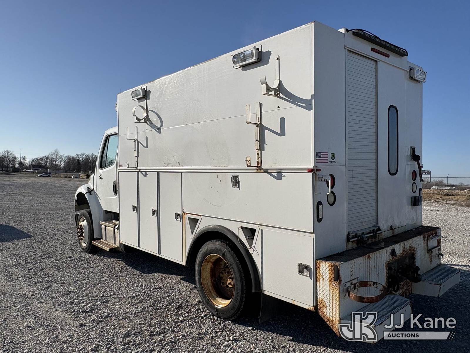 2014 Freightliner M2 106 8.9L L6 DIESEL Auto, 4X2, A/C, with Boss Air Compressor, (64,344 miles) (Runs, Operates, Does Not Move) (Check Engine Light on, Rear axles removed, unit does not move, paint and body damage, Rust Damage, dash pieces removed). buyer responsible for loading of unit. ) (Reads 7,559 hours) This is a Titled Item NOTE: This unit is being sold AS IS/WHERE IS via Timed Auction and is located in Hawk Point, MO. Inspection & preview days for this unit are the 2 business days prior to the first day of items closing for this auction, item is located at 25 State Highway A Hawk Point, MO 63349 and hours of operations are 8a-4p. For pre-sale questions, please contact Adam Stanek at (636) 295-1594. (Buyer is responsible for removal. Assistance by consignor or JJ Kane Auctions is not assured.)