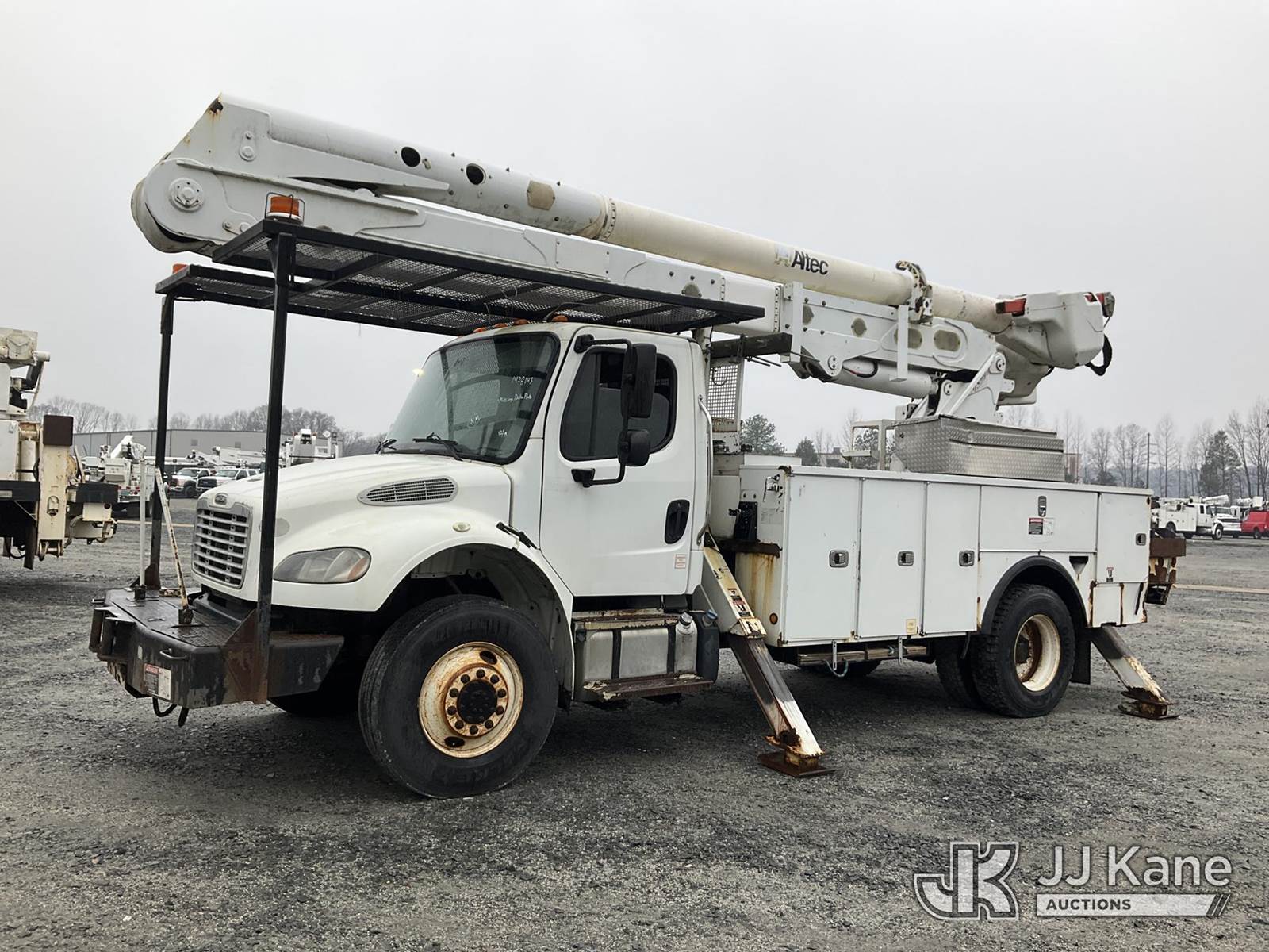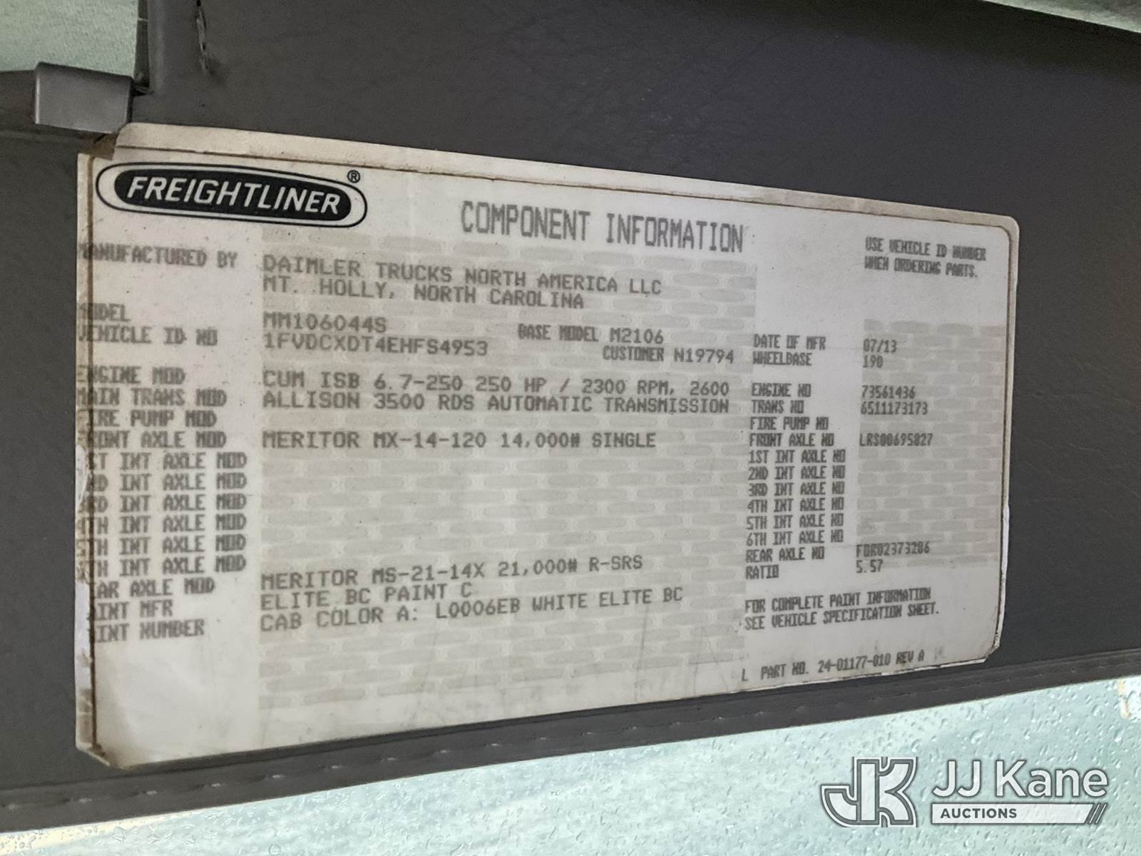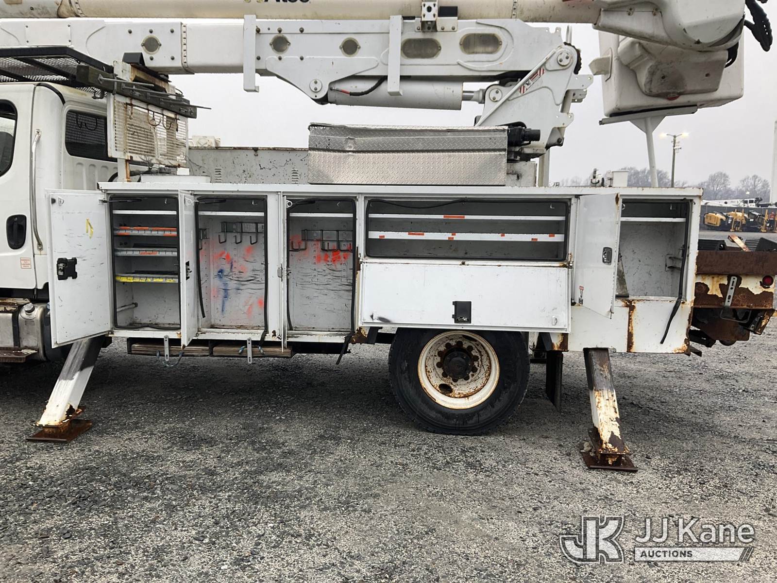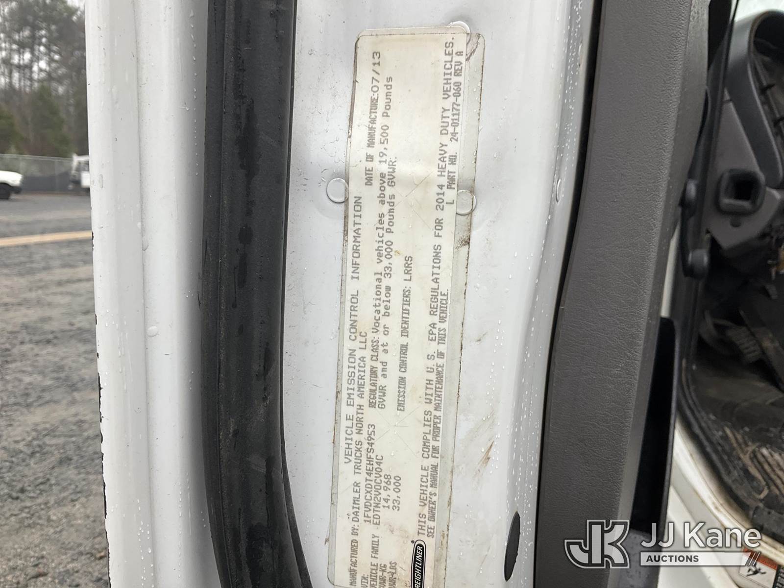 Altec AA55-MH, 60 ft, Material Handling Bucket Truck s/n 0913FH0616, with two-man bucket, rear mounted on 2014 Freightliner M2 106 4x4 Utility Truck, Cummins ISB-250 6.7L diesel, Auto, A/C, with front winch , (101,395 miles) (Runs & Moves) (Upper Does Not Engage, Upper Condition Unknown, Missing Data Plate. Upper Serial Number Verified By Altec.) This is a Titled Item NOTE: This unit is being sold AS IS/WHERE IS via Timed Auction and is located in China Grove, NC. Inspection & preview days for this unit are the 2 business days prior to the first day of items closing for this auction, item is located at 820 E NC Hwy 152 China Grove, NC 28023 and hours of operations are 8a-4p. For pre-sale questions, please contact Office Staff @ (704) 674-1113. (Manuals provided in cab) (Buyer is responsible for removal. Assistance by consignor or JJ Kane Auctions is not assured.)