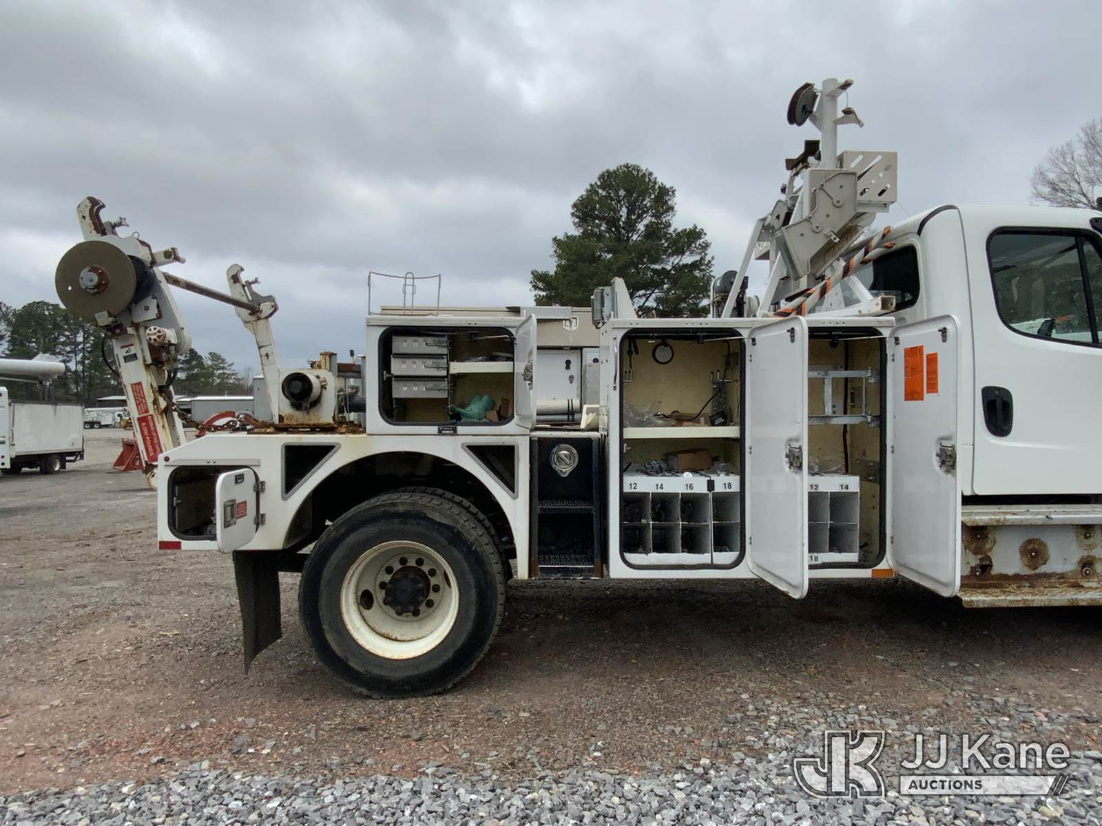 2014 Freightliner M2 106 Utility Truck, 6.7L diesel, 4X2, Auto, A/C, with rear reel carrier, backup camera, (80,612 miles) Former Bucket Truck, Boom Removed (Runs & Moves) (Jump to Start, Engine Lights On, ABS Light On, Rust Damage, Minor Body Damage) This is a Titled Item NOTE: This unit is being sold AS IS/WHERE IS via Timed Auction and is located in Graysville, AL. Inspection & preview days for this unit are by appointment only; please contact us at contact@jjkane.com or 84-Go-JJKane for more details. Alabama Auctioneer Michael Whitebread - License # 5592 (Buyer is responsible for removal. Assistance by consignor or JJ Kane Auctions is not assured.)