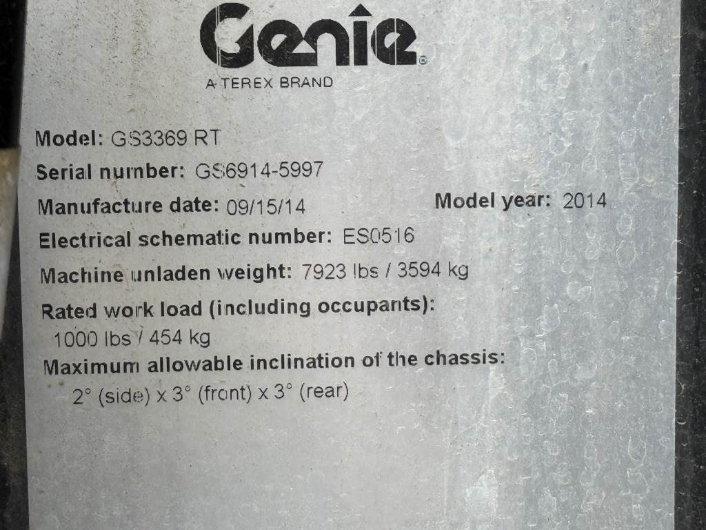 2014 Genie GS3369RT 4x4 Rough Terrain Scissor Lift