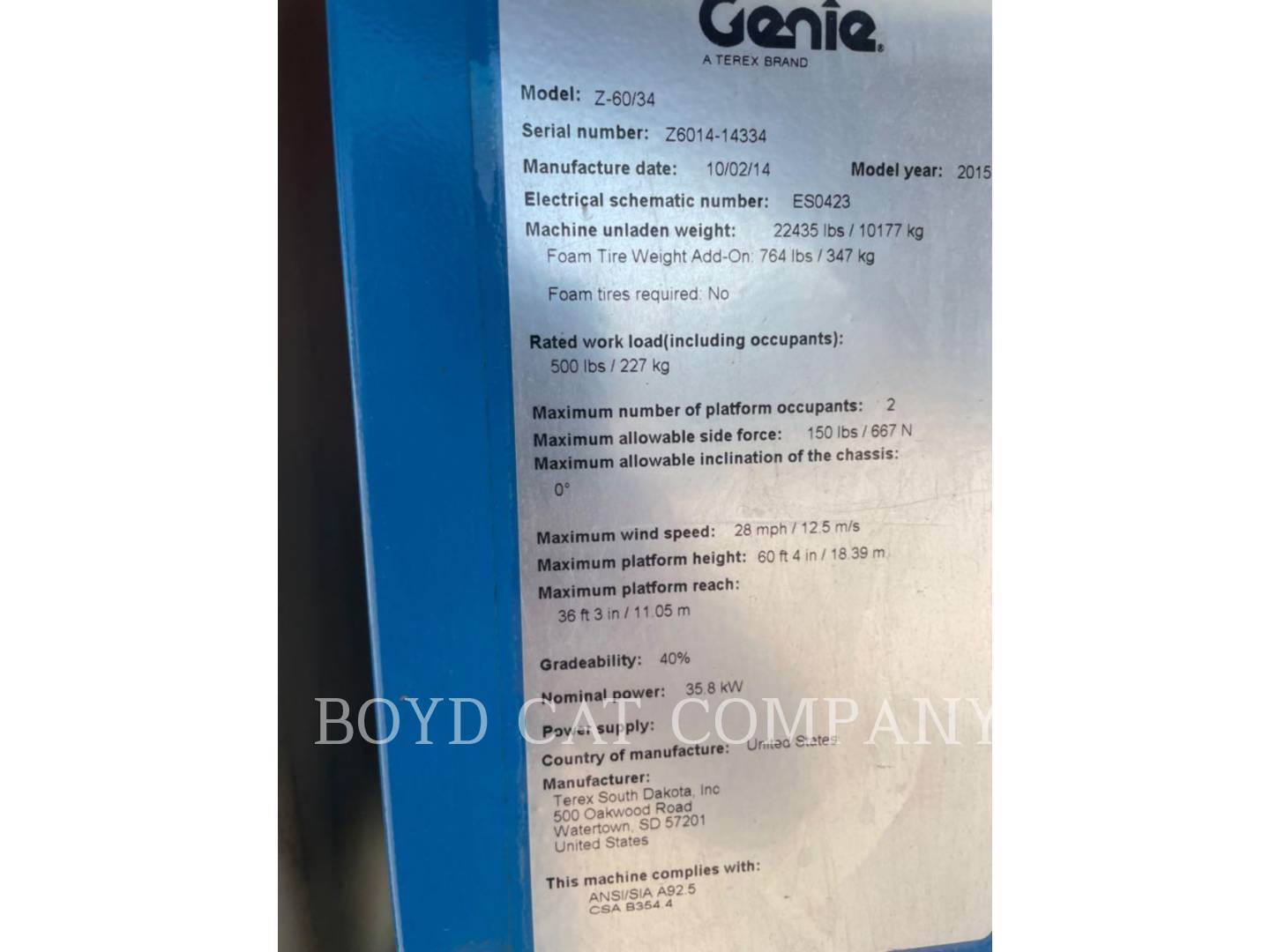 2014 Genie Z60/34RTDS G84 Boom Lift