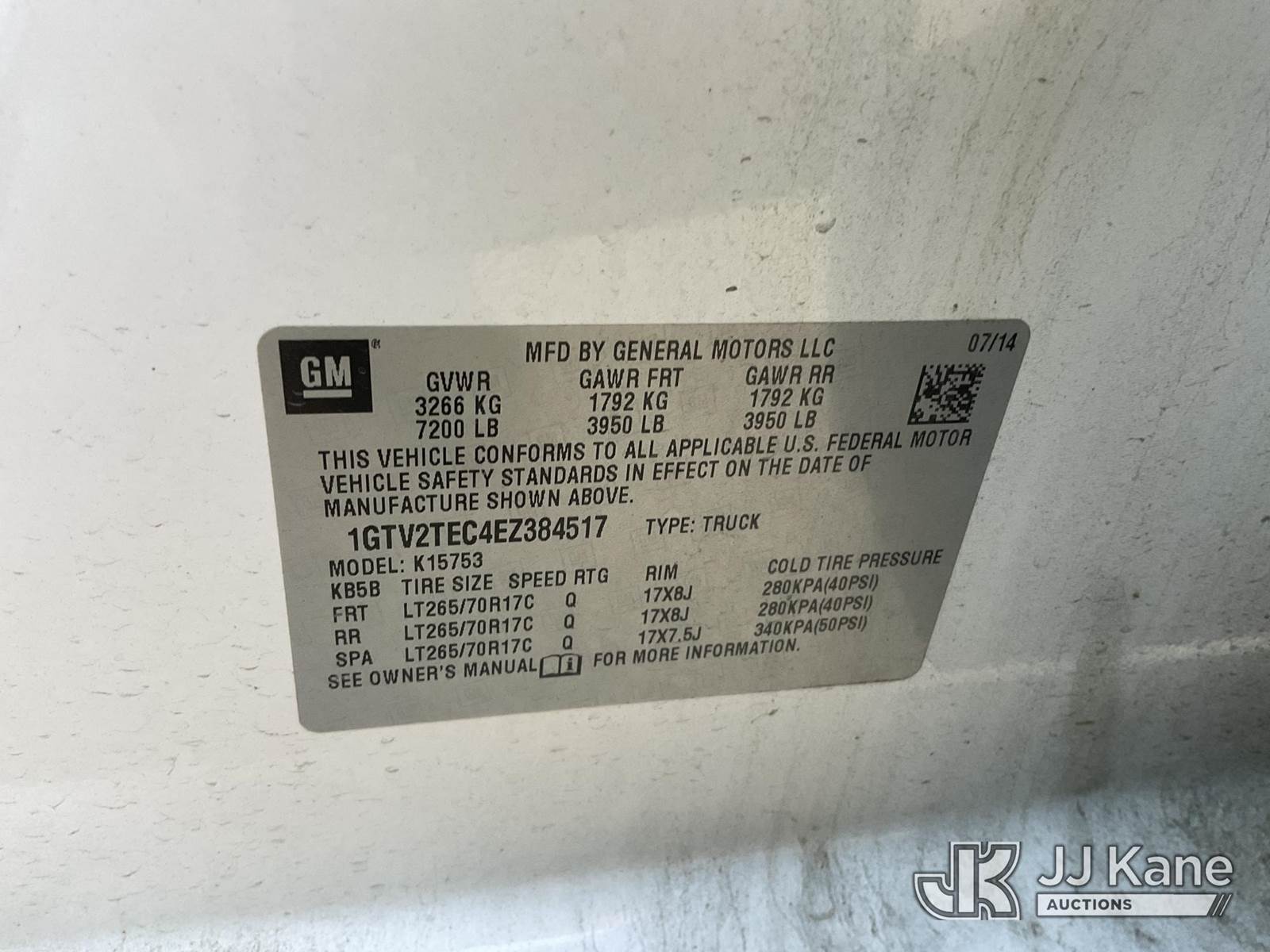 2014 GMC Sierra 1500 Base Double Cab 4WD Extended-Cab Pickup Truck, s/n 1GTV2TEC4EZ384517, 5.3L V8 OHV 16V Gas, 6-Speed Automatic, A/C, with Tool Box, Tow Package, (169,207 miles) (Runs & Moves)(Check Engine Light On, Transmission Problems, Vehicle Overheats-Transmission Gives Out) (Bidding Restricted to Licensed Vehicle Dealers Only), This is a Titled Item NOTE: This unit is being sold AS IS/WHERE IS via Timed Auction and is located in Dixon, CA. Inspection & preview days for this unit are the 2 business days prior to the first day of items closing for this auction, item is located at 8668 Sparling Ln Dixon, CA 95620 and hours of operations are 8a-4p. For pre-sale questions, please contact JJ Kane Staff at (707) 678-8060 (dixon@jjkane.com). Dealer License Number 45696. (Buyer is responsible for removal. Assistance by consignor or JJ Kane Auctions is not assured.)