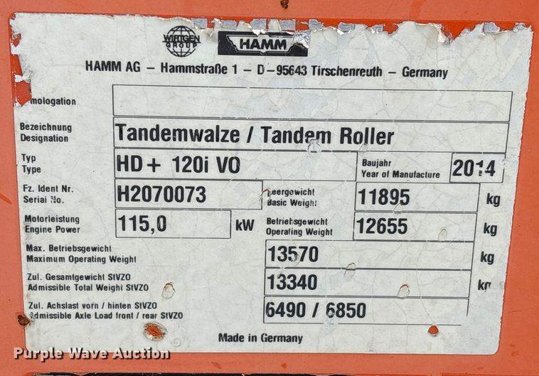 2014 Hamm HD + 120i V0 Double Drum Vibratory Roller