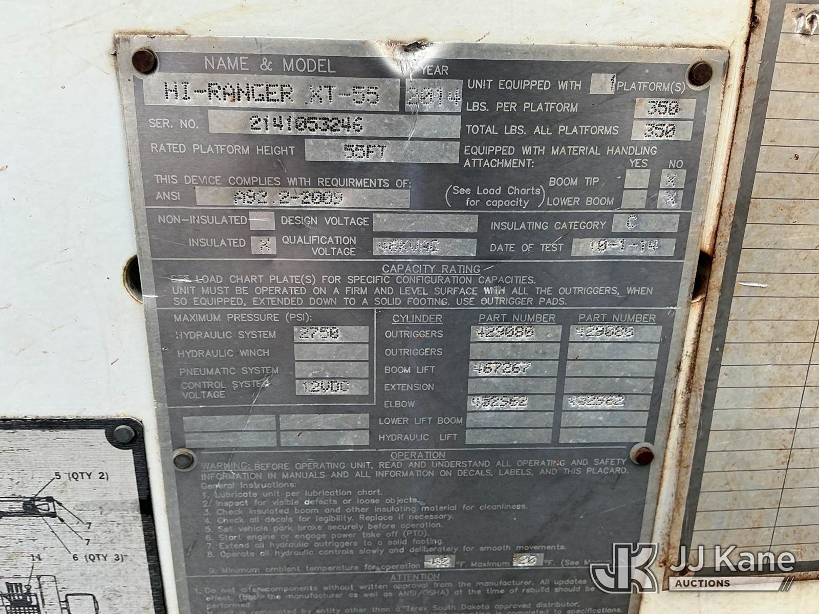 2014 Hi-Ranger XT-55, 60 ft, Over-Center Bucket Truck