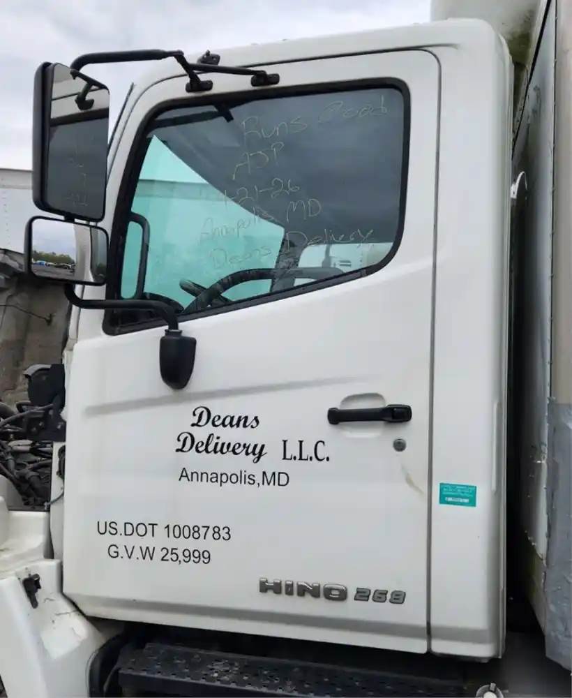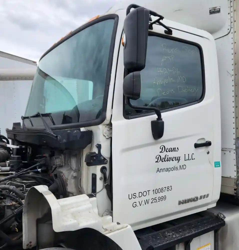(Used) 2014 Hino 268, CAB- Type: Day Cab, Engine: Hino J08E-VC, Less Interior, Less Doors Sold Separately, Reference images for condition, For more information about this item, give us a call. We ship Worldwide! (CRG HEAVY TRUCK PARTS) 929 W PULASKI HWY ELKTON, MD 21921, Air/Hydraulic: Air/Hydraulic, Engine Make: Hino, Engine Model: J08