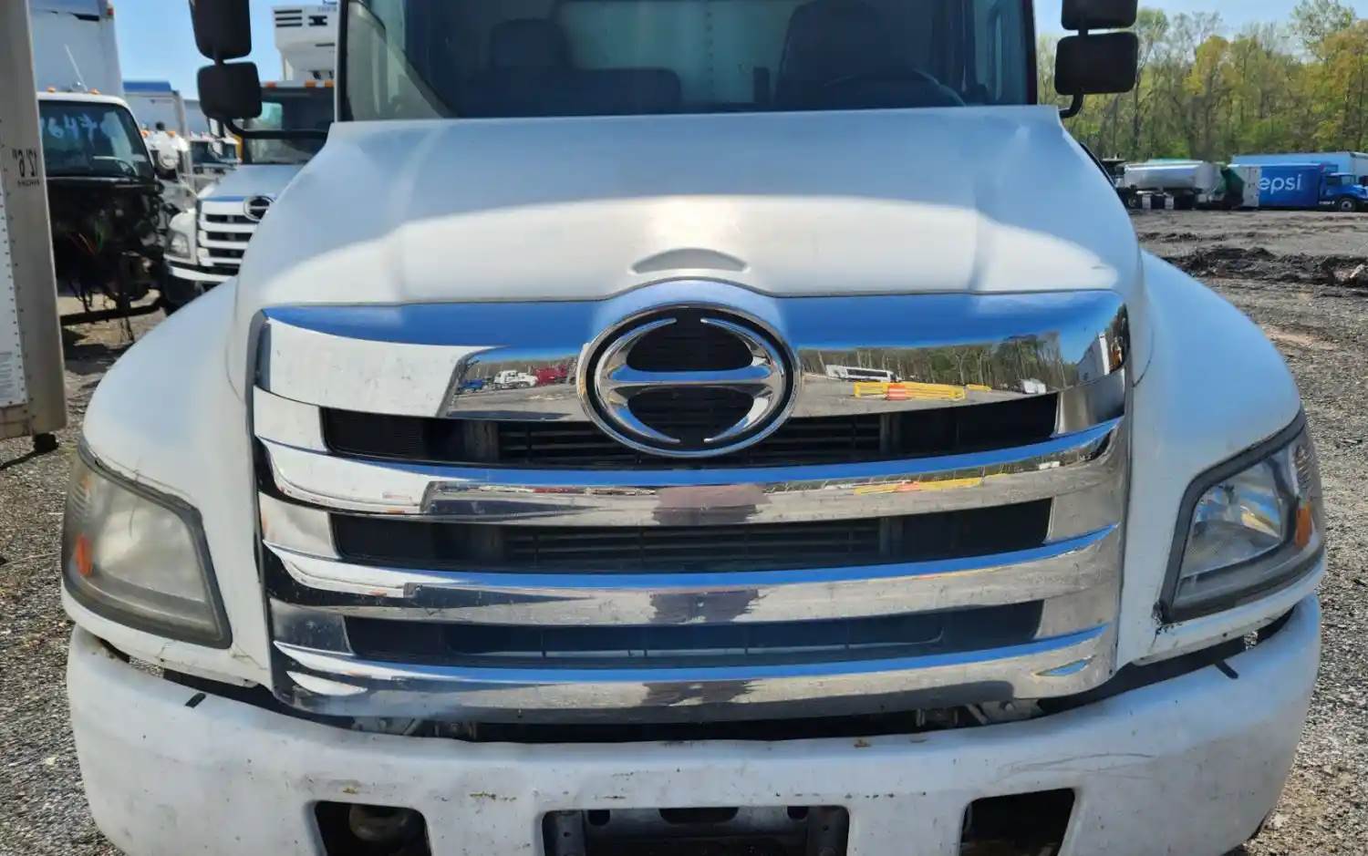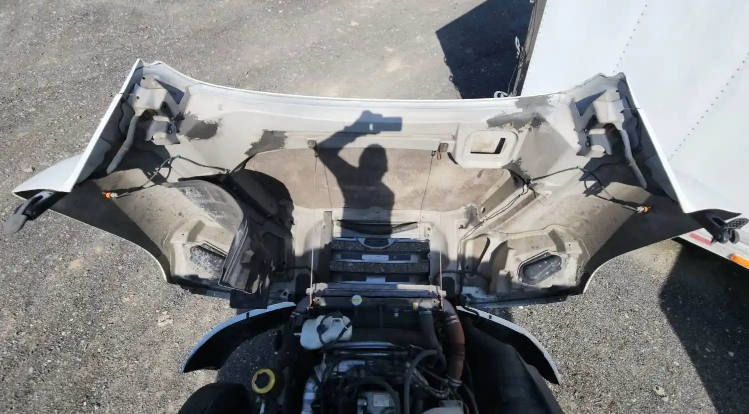 (Used) 2014 Hino 268, HOOD ASSEMBLY- Length: 43 ½" From Cowl to grille, Color: White, Material: Fiberglass, Damage Reference images for condition, For more information about this item, give us a call. We ship Worldwide! (CRG HEAVY TRUCK PARTS) 929 W PULASKI HWY ELKTON, MD 21921, Length: 43 ½" From Cowl to grille, Type: Manual