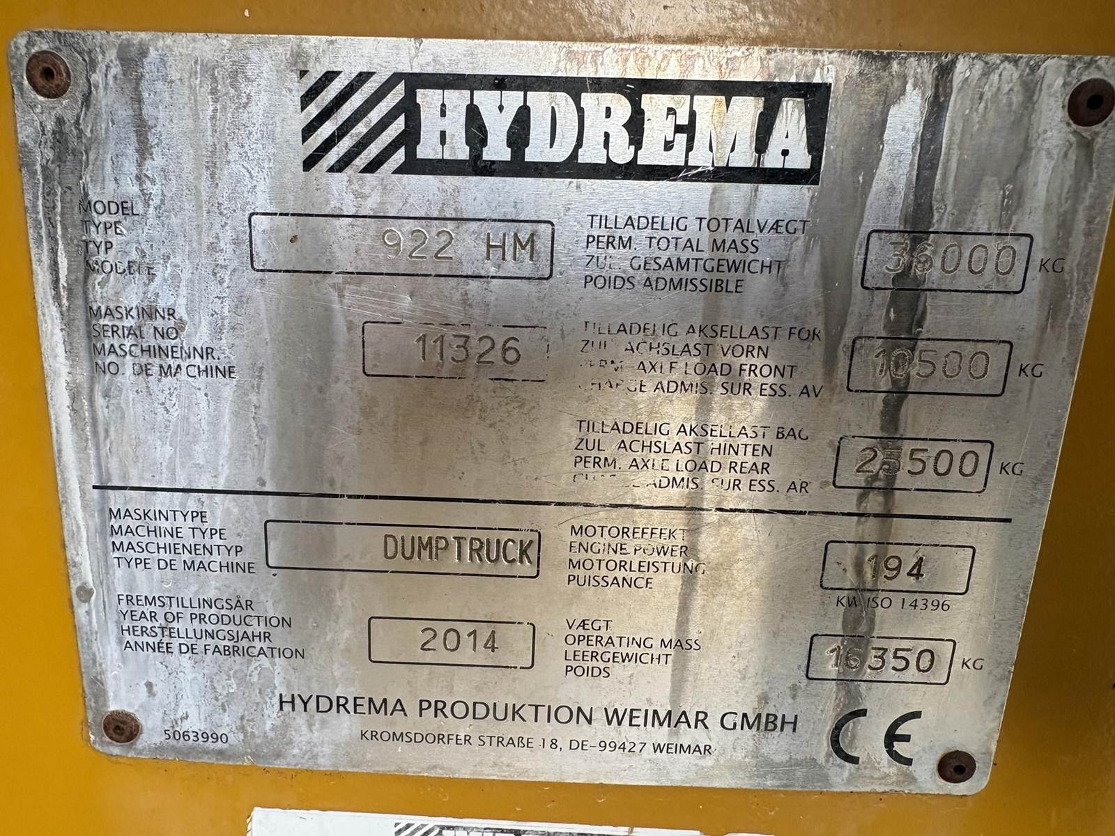2014 Hydrema 922HM Off-Highway Truck